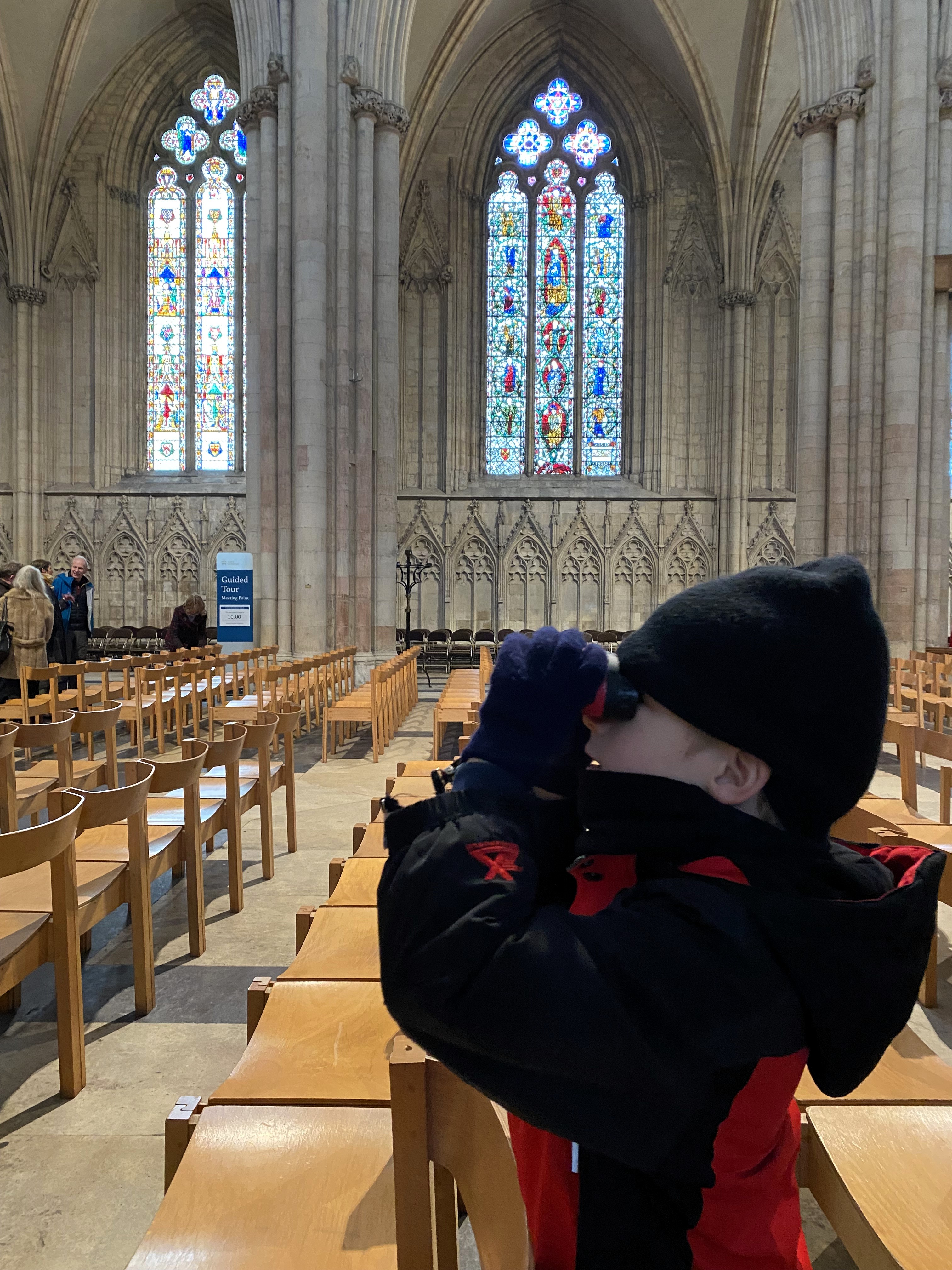 Our first stop was York, which I absolutely loved. Even during the planning process, York was so user-friendly and had so many kid-centric options. And once we arrived, it didn’t disappoint! Certainly one of my favorite British cities thus far! The York Minster was not only gorgeous, but also so welcoming to children! They had amazing Explorer Backpacks for kids to borrow, which were filled with magnifying glasses, binoculars, scavenger hunts, colored pencils, and more! I have never seen my kids so engaged in a church/cathedral before. I figured we’d pop in for a look-see, but we were there for over an hour!