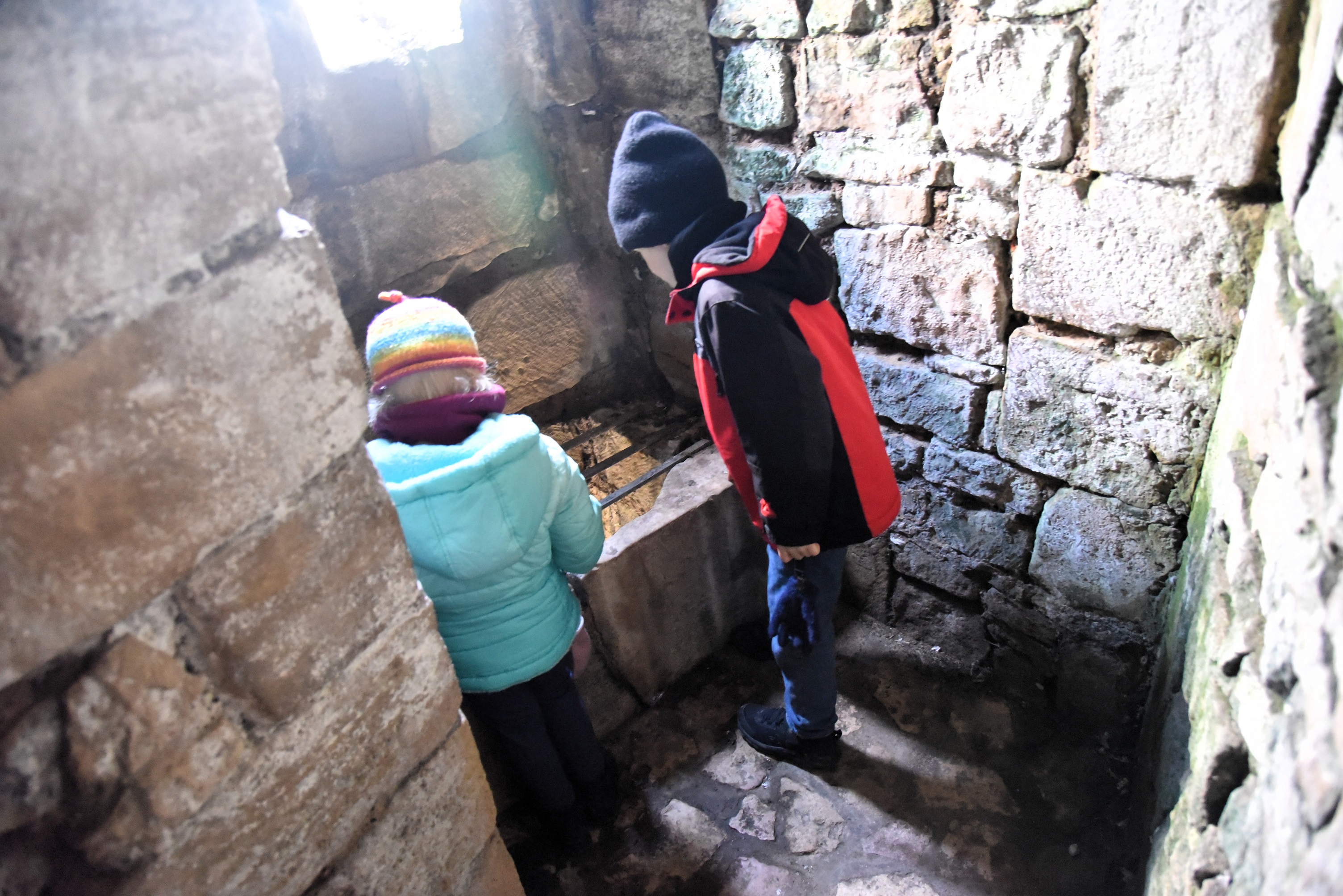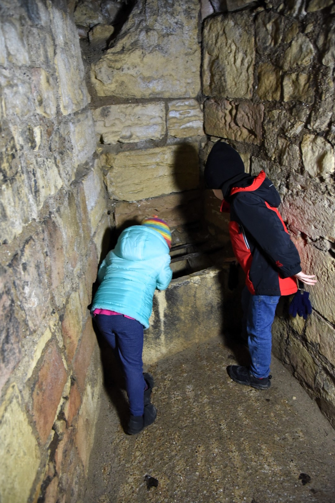 Here we go with the garderobes again! Conisbrough had cool educational videos projected onto the walls of every floor in the Keep, so it is here that we learned about gong farmers. Kids found it strangely hilarious that it was someone’s job to clean out the garderobes. Is it only my kids that find poop so funny? I hope not.