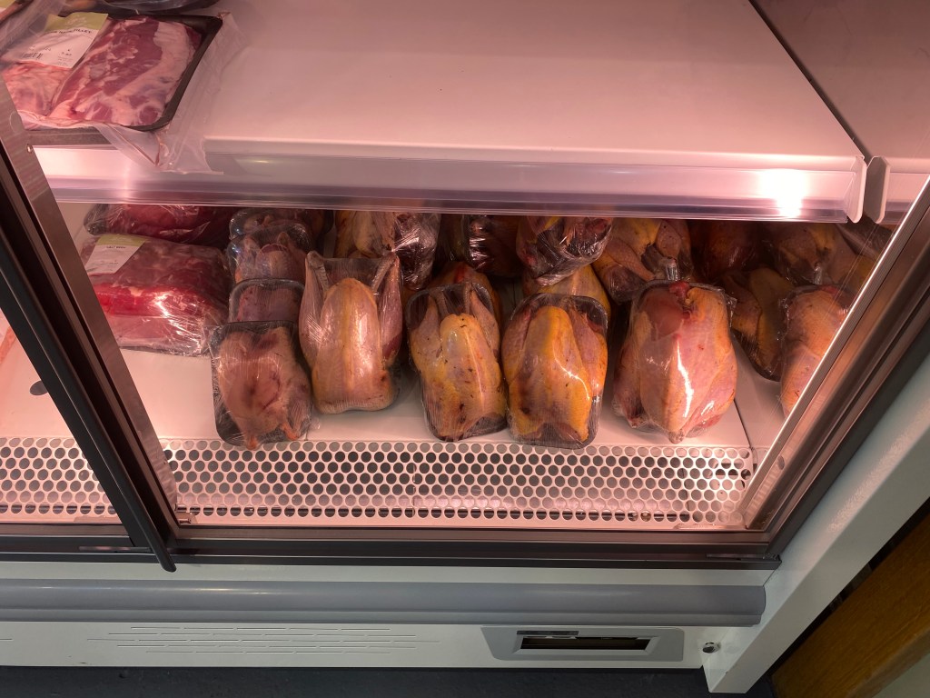 After a very lengthy and somewhat unusual conversation with the mum, I put in my order. Why so much discussion? Well…I had previously searched several local establishments at Thanksgiving time, in search of a bird. Joe and I knew we didn’t want a frozen commissary turkey, but I ran into an unexpected hurdle: all of the local poultry still had their appendages attached. We were not ready for this.