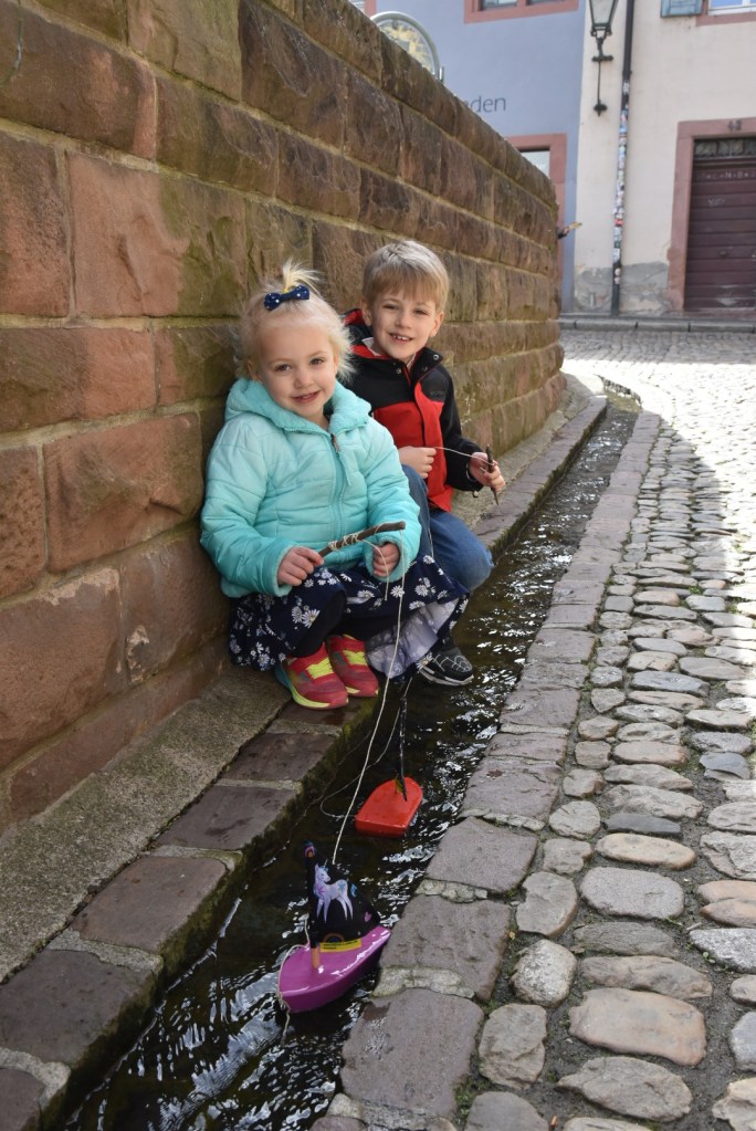 On our first day, without provocation, T1 wanted to buy a Bächle Boat. Even though we have three of these at home, we let each kid pick out one. It was the best €16 we ever spent! For the next three days, we never walked faster than a slow amble, while the kids “sailed” their boats in my most beloved aspect of this city, the Bächle.