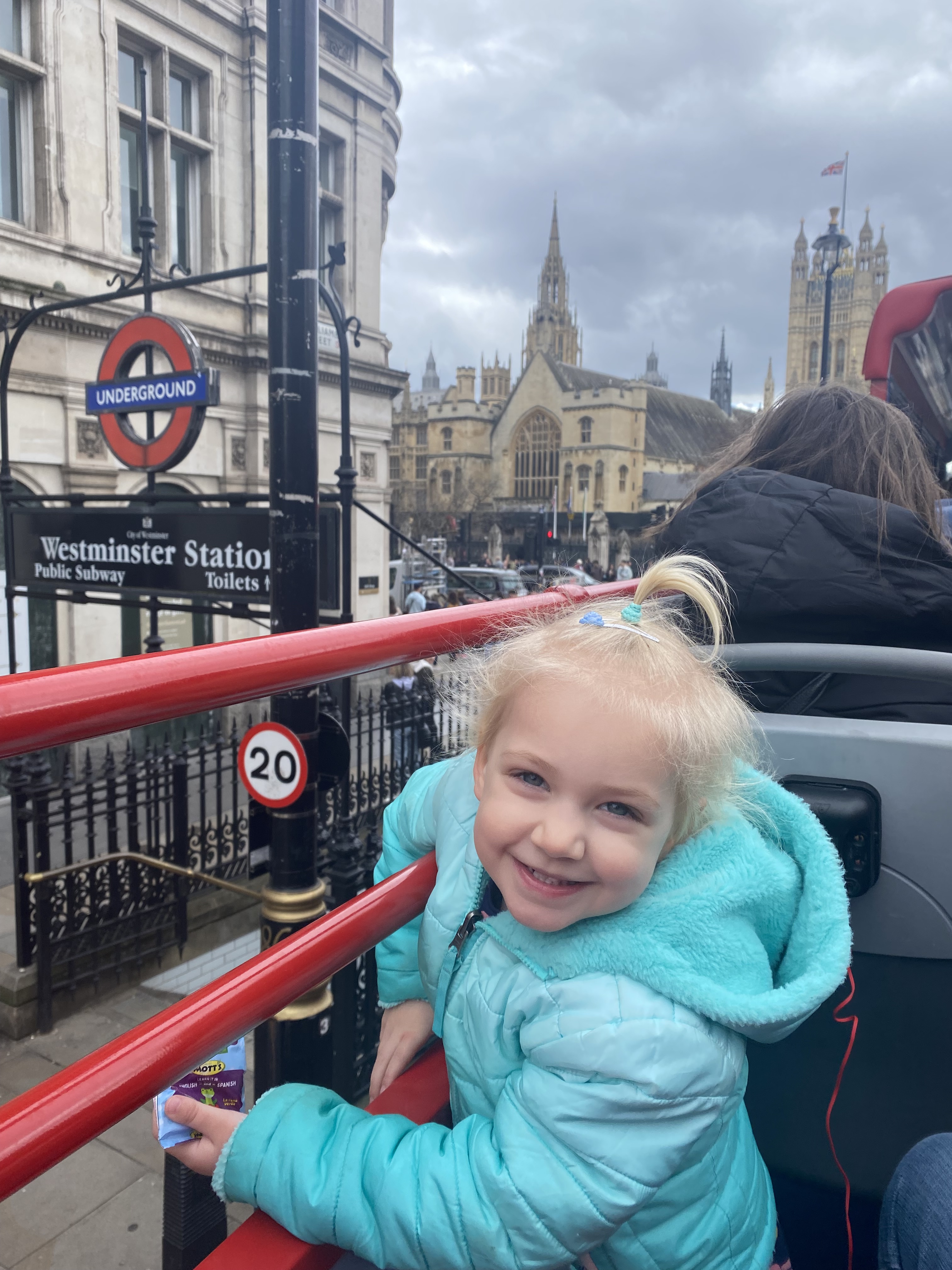 The kids have been anxious to ride a double-decker bus since we arrived. Knowing we had several years to accomplish this, I was in no rush. I had one simple stipulation: we were only going to take the journey on a sunny day. While not exactly sunny, there was no rain in the forecast, so we hopped aboard! I couldn’t hold them off!