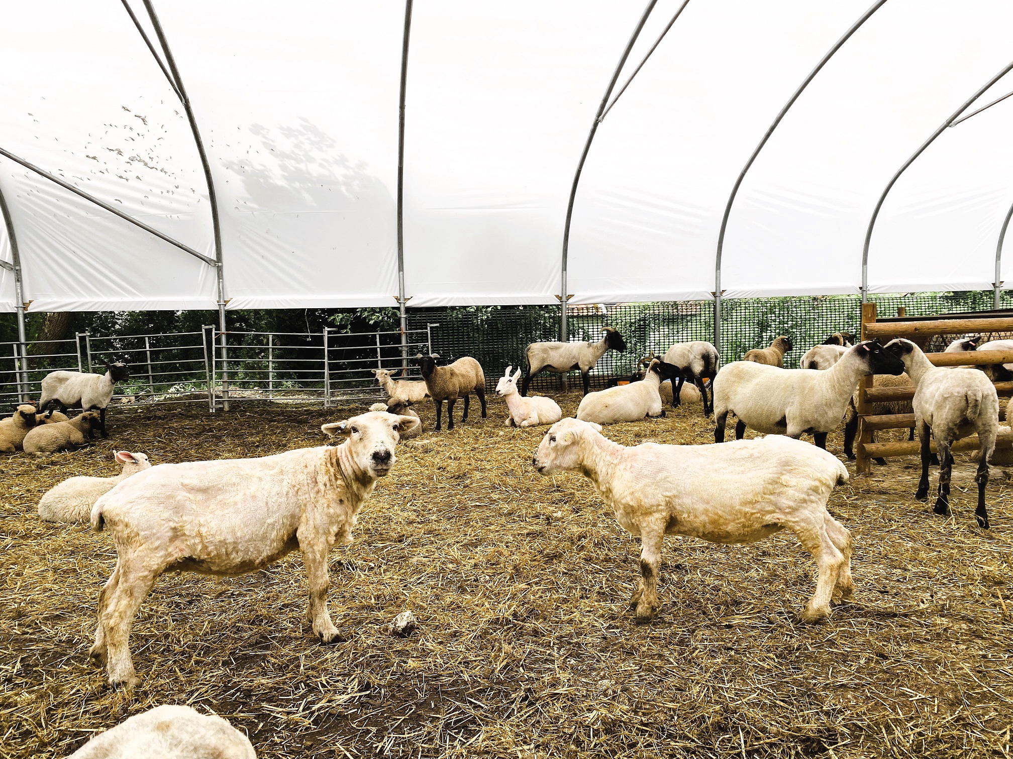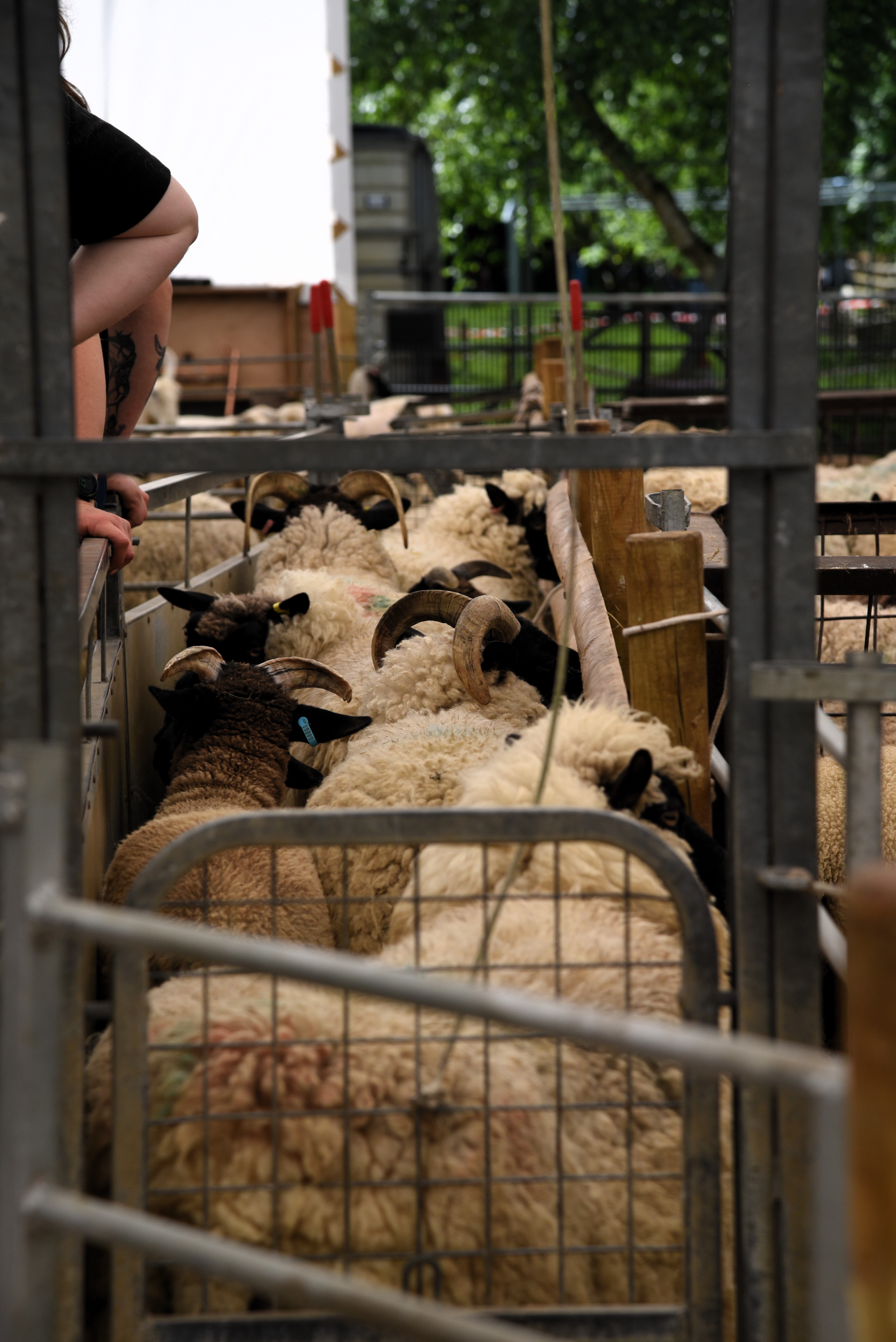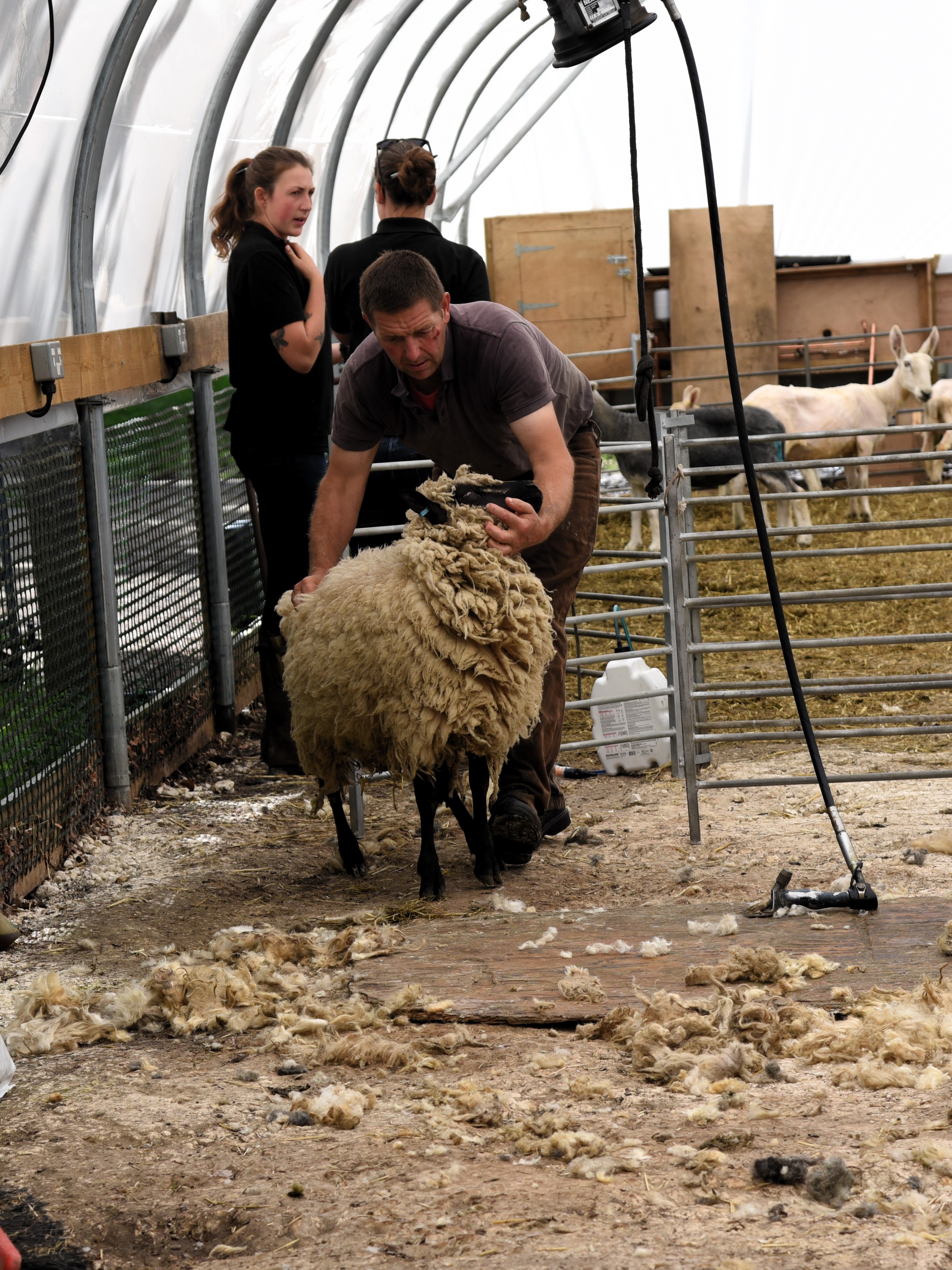 The queue to be shorn, and the “naked” sheep collecting area.