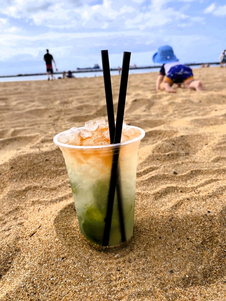 I digress. We scored some much-appreciated beach toys and much-more-appreciated inexpensive cocktails! And while I was trying to get all Instagram-y with my 10:00am beach mojito, I realized my littlest guy was already escaping toward the ocean!