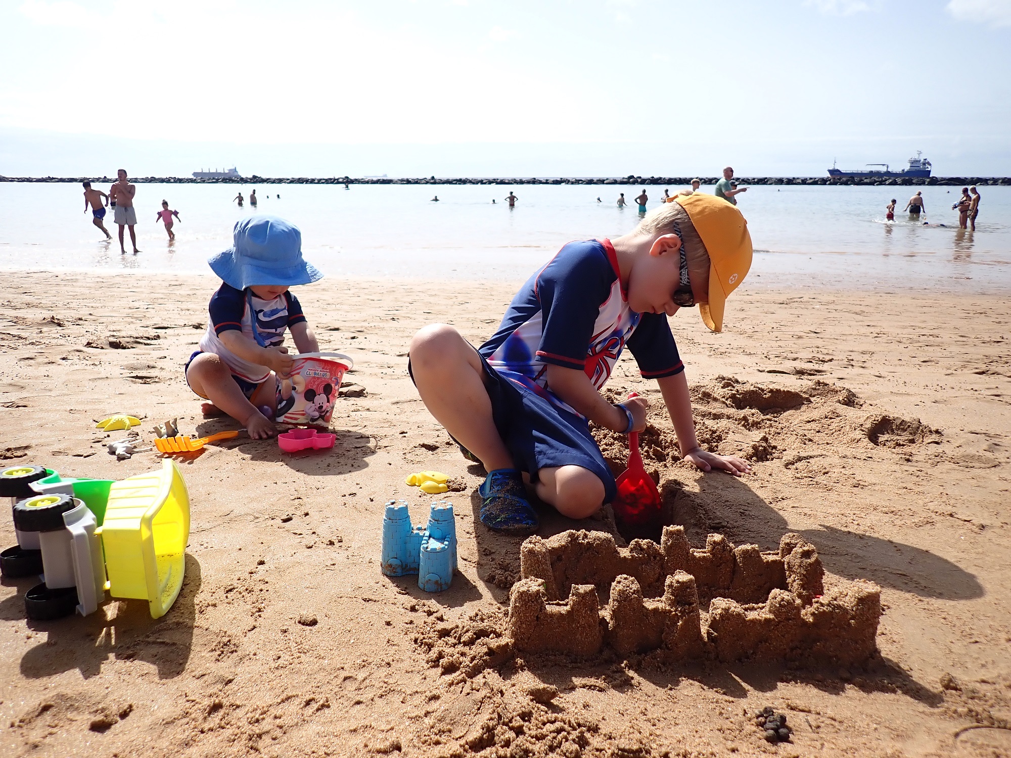 A local saved our day today. For context to this story: I prioritized pool toys in the suitcase instead of buckets and spades for the beach. On beach day, much to my husband’s chagrin, I packed our bag with bowls and wooden spoons from the kitchen. Kids don’t care, right?! As long as it digs and pours, they don’t mind!