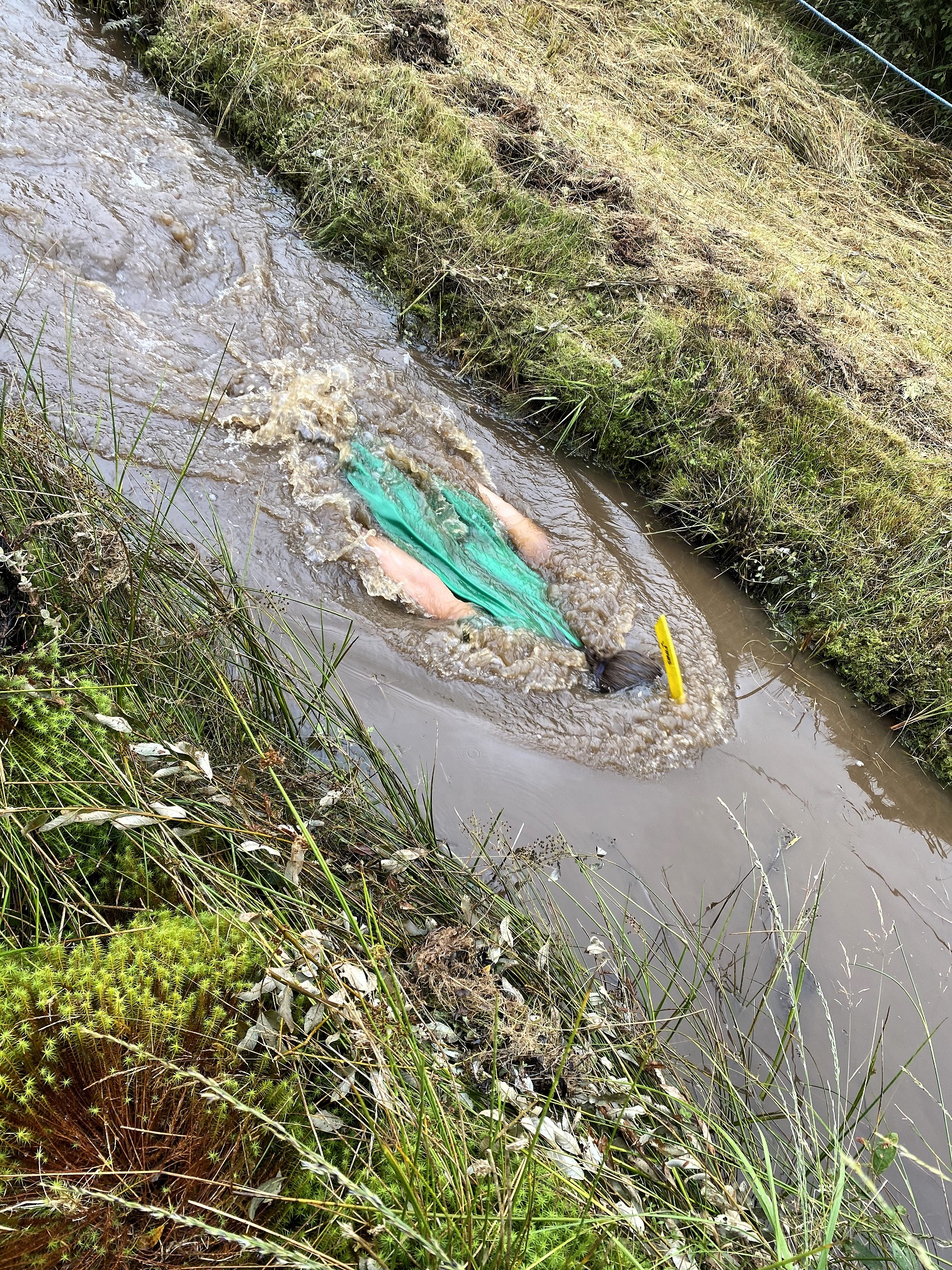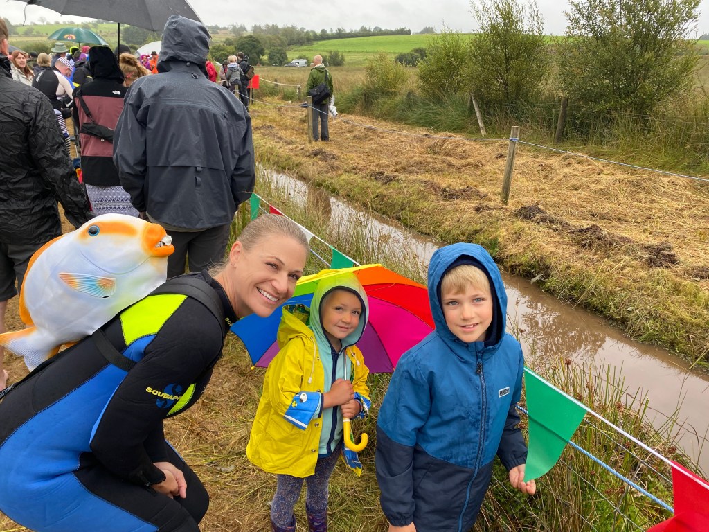Back at the starting line, all the conversations went like this: “Have you done this before? Hell no. Have you? No. How did you learn about this? (insert anything from Facebook to ‘I grew up here’ to ‘the Silly Sports page in my kids UK book’.) Why did we think this was a good idea? I have no idea. This weather is total shit. I agree.” And then we all laughed at ourselves and rolled our eyes and shared tips and ideas on how to get this silly sport accomplished. Nothing (trauma) bonds strangers like willingly jumping into a freezing cold, dirty, bog in the driving rain.