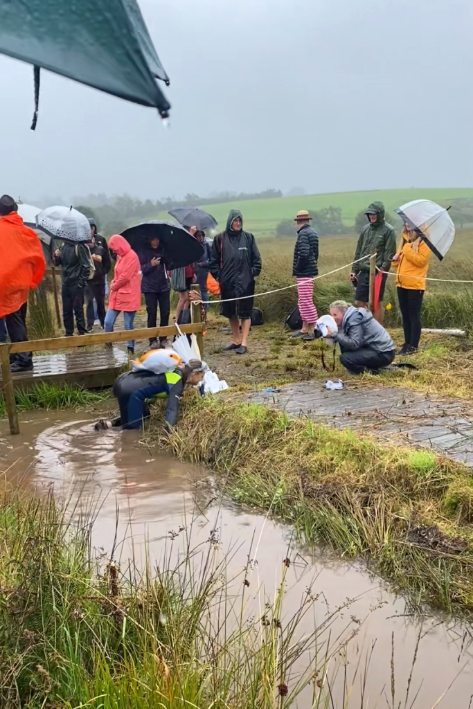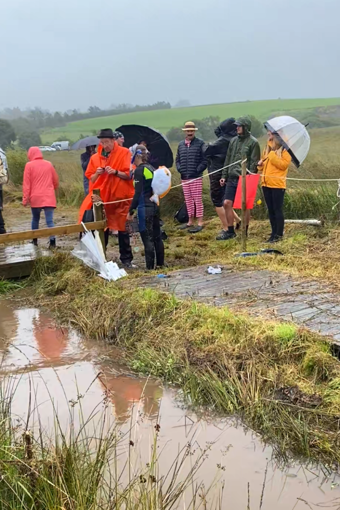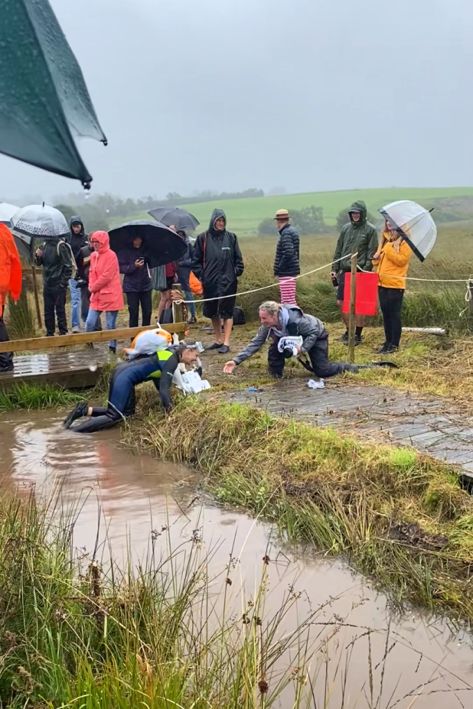 Thus far, I have failed to elaborate on the weather. It was awful. A brisk 50oF, pouring rain, and wind. But the bog snorkelers were already on the go! Costumes were encouraged, and we marveled at the “fancy dress” both in and out of the bog.
