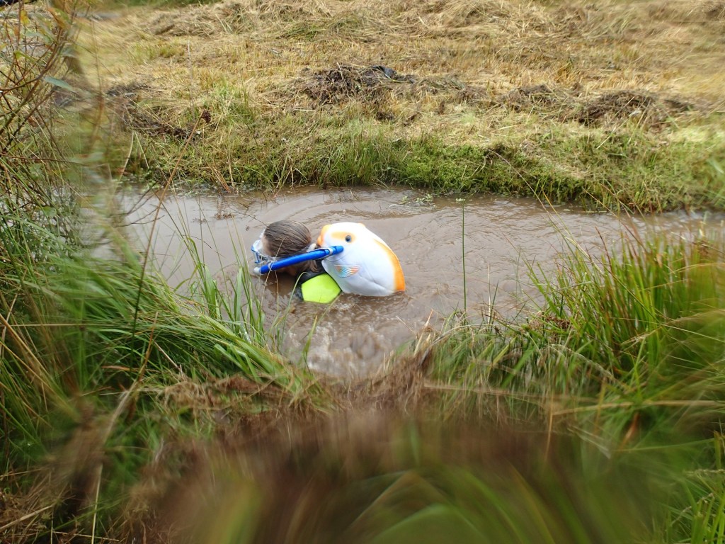 This is getting long. Let’s get to the bog already! So, I packed up a long, thick wetsuit, fashioned a fish-backpack, and off we went! Bognsnorkeling or bust!