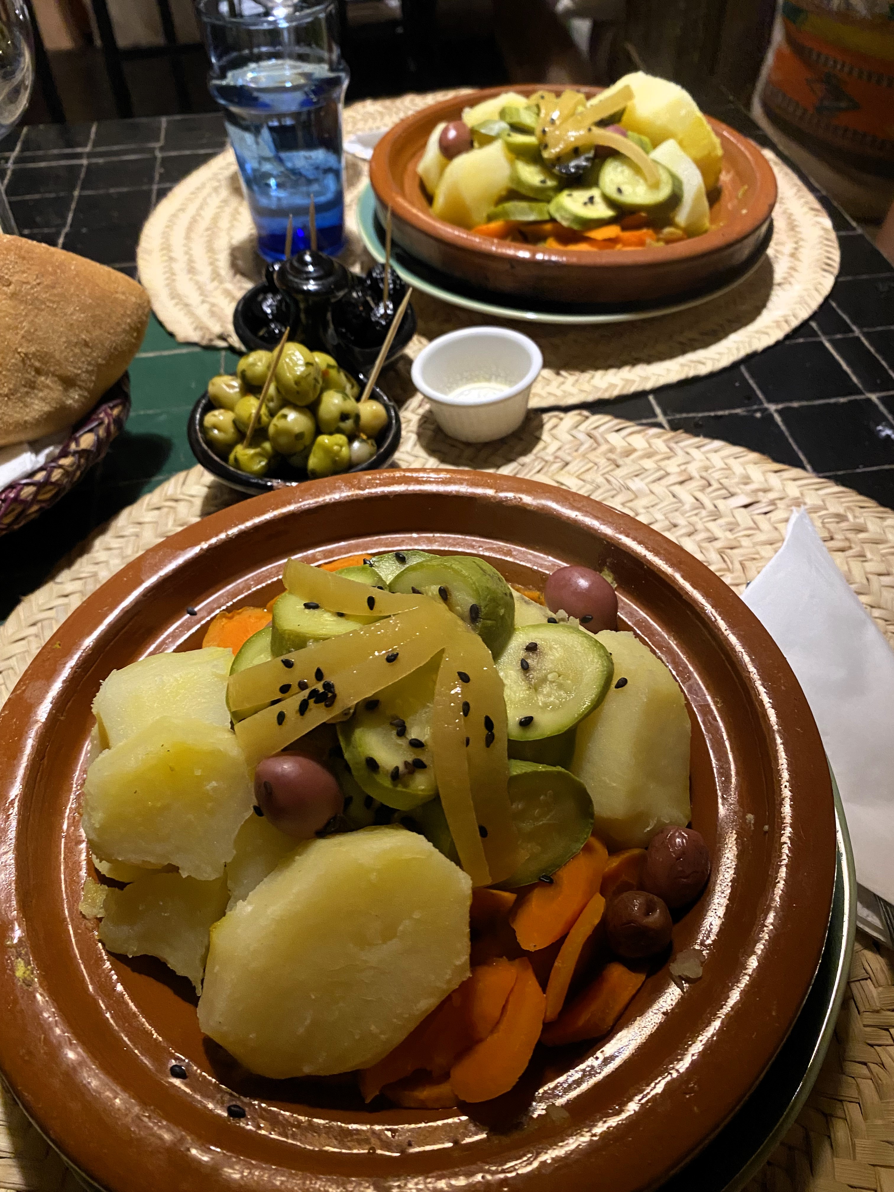 Finally inside, the little man walked me to my room, where L was waiting. We both just laughed and gasped and stared at each other. Not because we hadn’t seen each other in ten years, but because we both had the same semi-frightening experience trying to get here! We hugged and frantically compared stories of the van, the deserted alley, the phone call, the little man, the sketchiness, and the relief of arrival. We sent proof of life to our husbands and then sat down to a very late, but very appreciated, tagine dinner. Served by none other than…the little man.