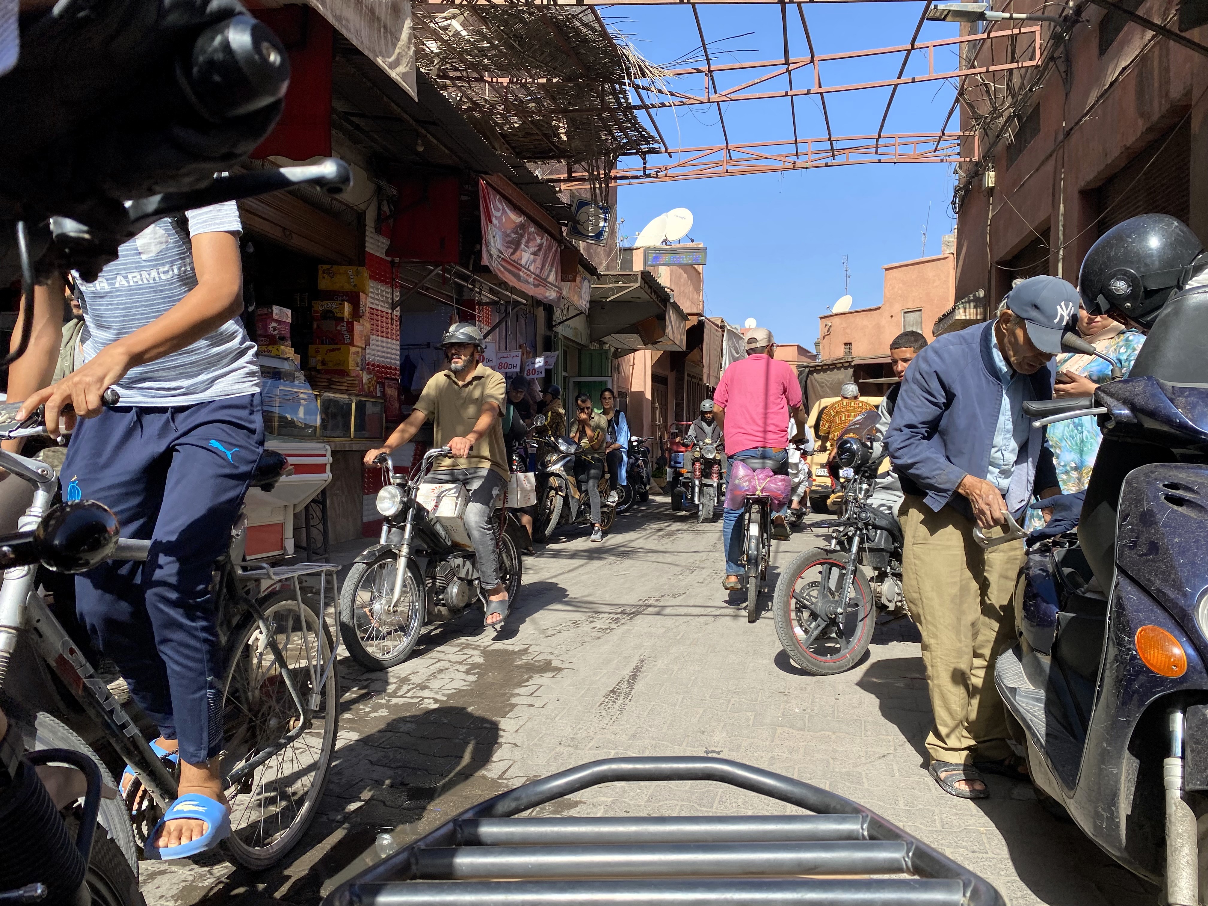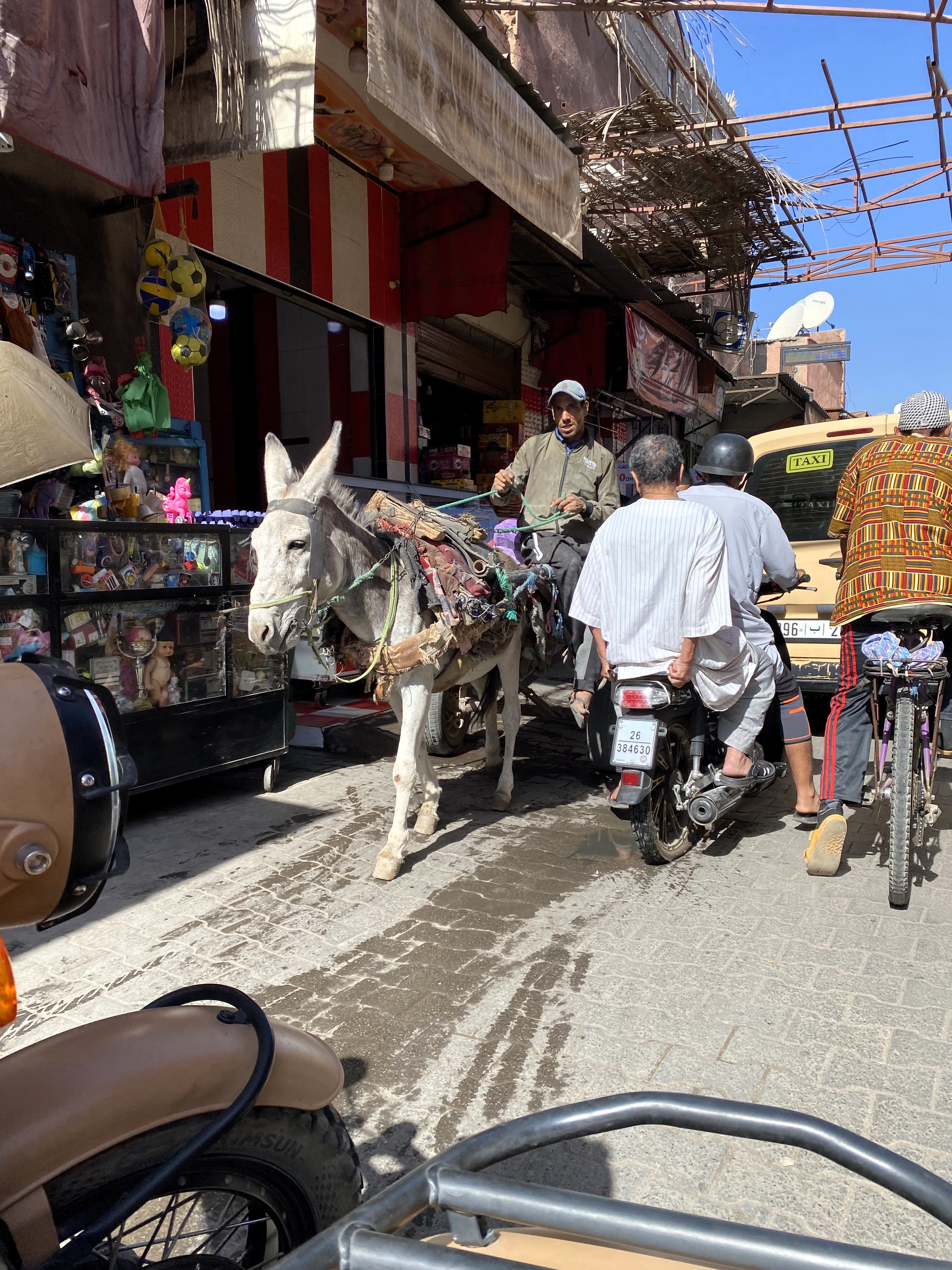 Entering the Medina, we were once again greeted by the chaos of the city center. Narrow streets filled with every mode of transportation one could think of, all trying to navigate without any sense of logic or order: bicycles, donkeys, mopeds, cars, trailers, motorcycles, and of course…two female tourists in a sidecar with eyes the size of saucers!