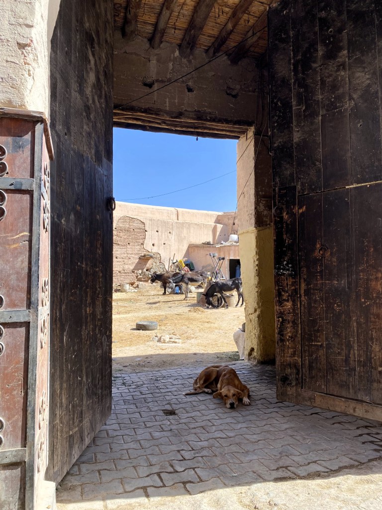 Speaking of donkeys, they are a very common tool used within the Medina. So much so that there is a “donkey hotel” in which owners can leave the donkeys overnight instead of trudging back to farms on the outskirts of town. This sweet pup was guarding his day-boarders!