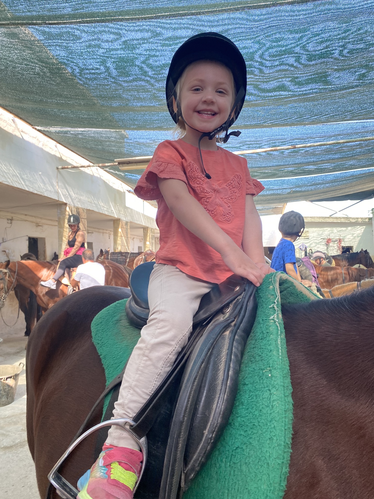But we arrived and the horses looked lovely. Check. The kids put on helmets and mounted up. Check. We took off and everyone was safe and content. Check.