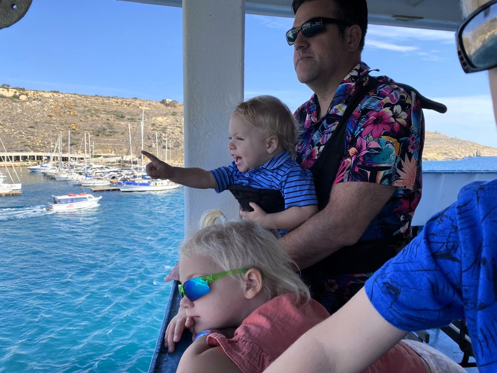 I wanted to take the kids to the caves of the Blue Grotto (not to be confused with the Blue Hole or the Blue Lagoon), but the tiny boats were not operating during the whole of our visit, due to weather. So with our extra day, we decided to board the big ferry and head to Gozo!