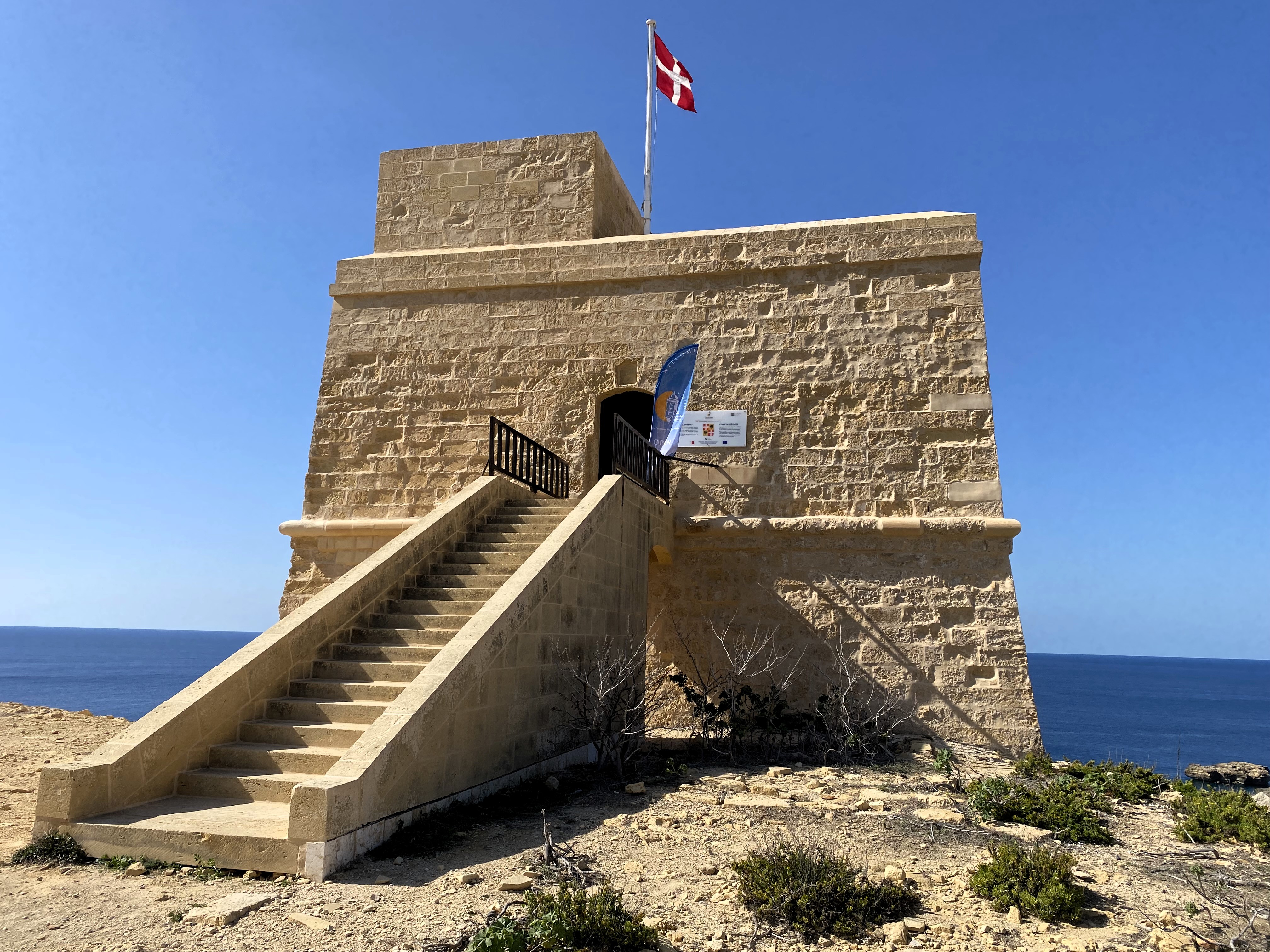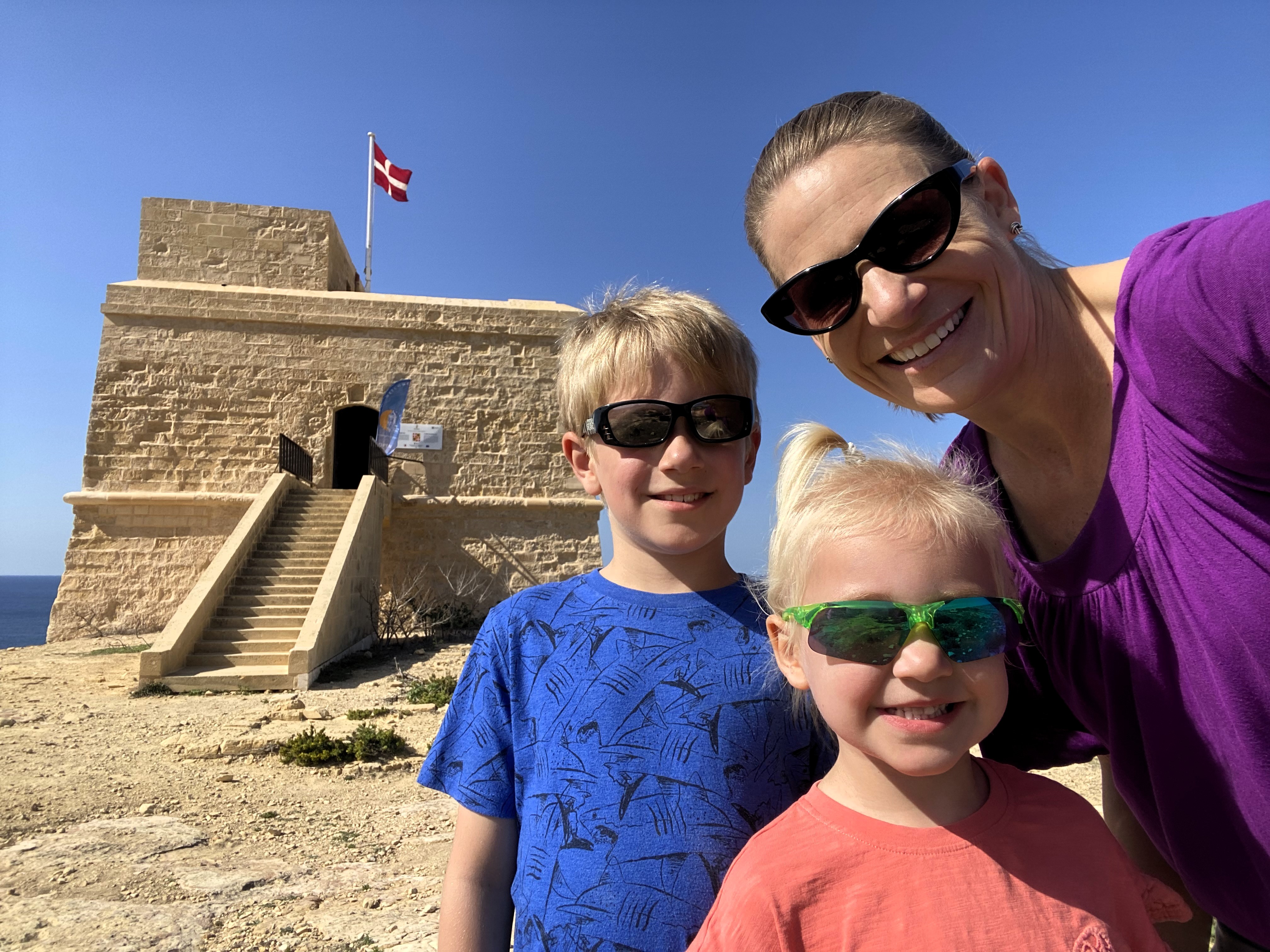 Then, the big kids and I hiked up to Dwejra Tower. This structure was part of system built in 1652, in which thirteen towers around the coast of Malta would stand guard. Each tower would be inter-visible and able to communicate with the others by day or night. The tower was manned by 4 men, 24hrs a day.