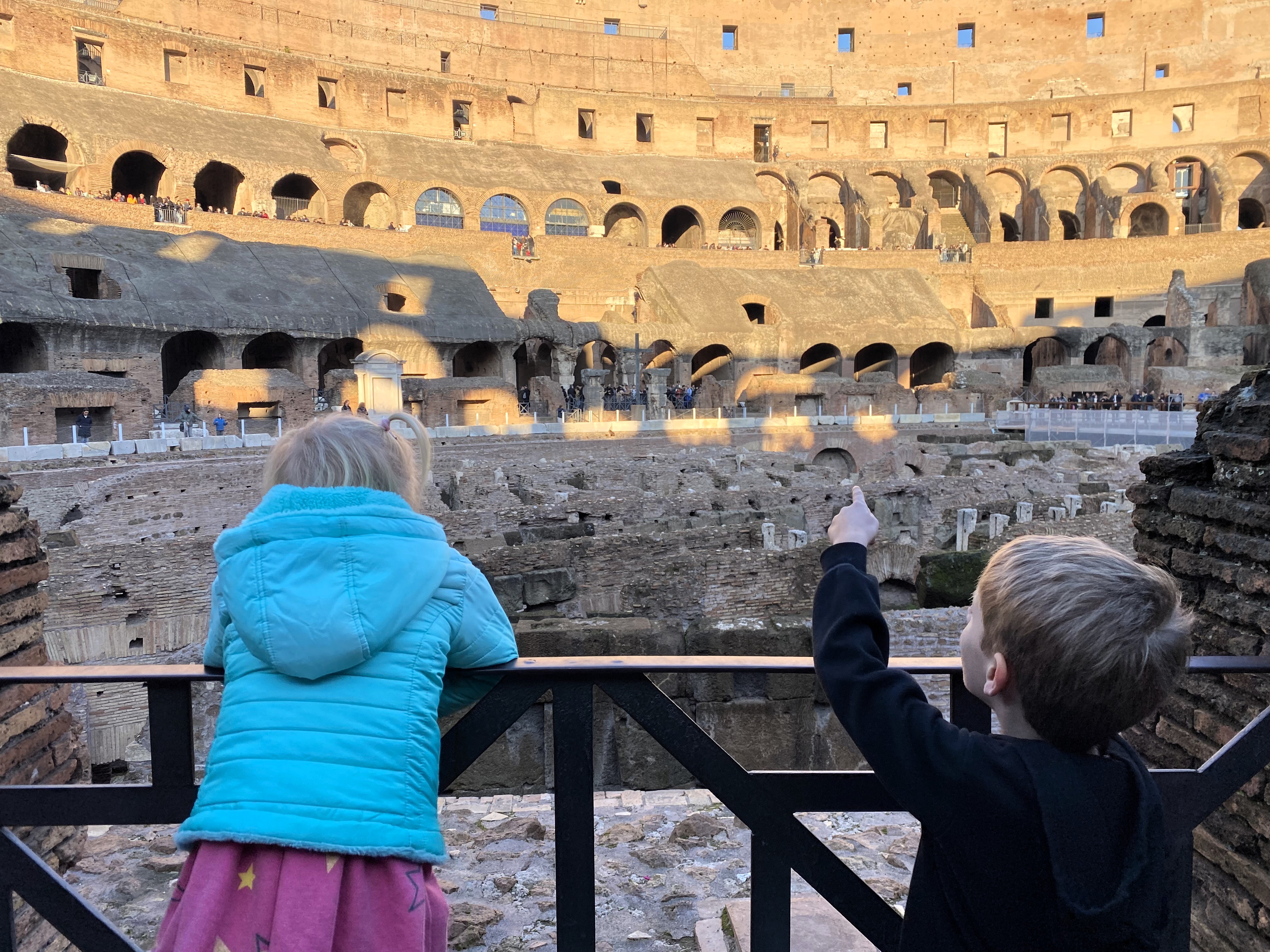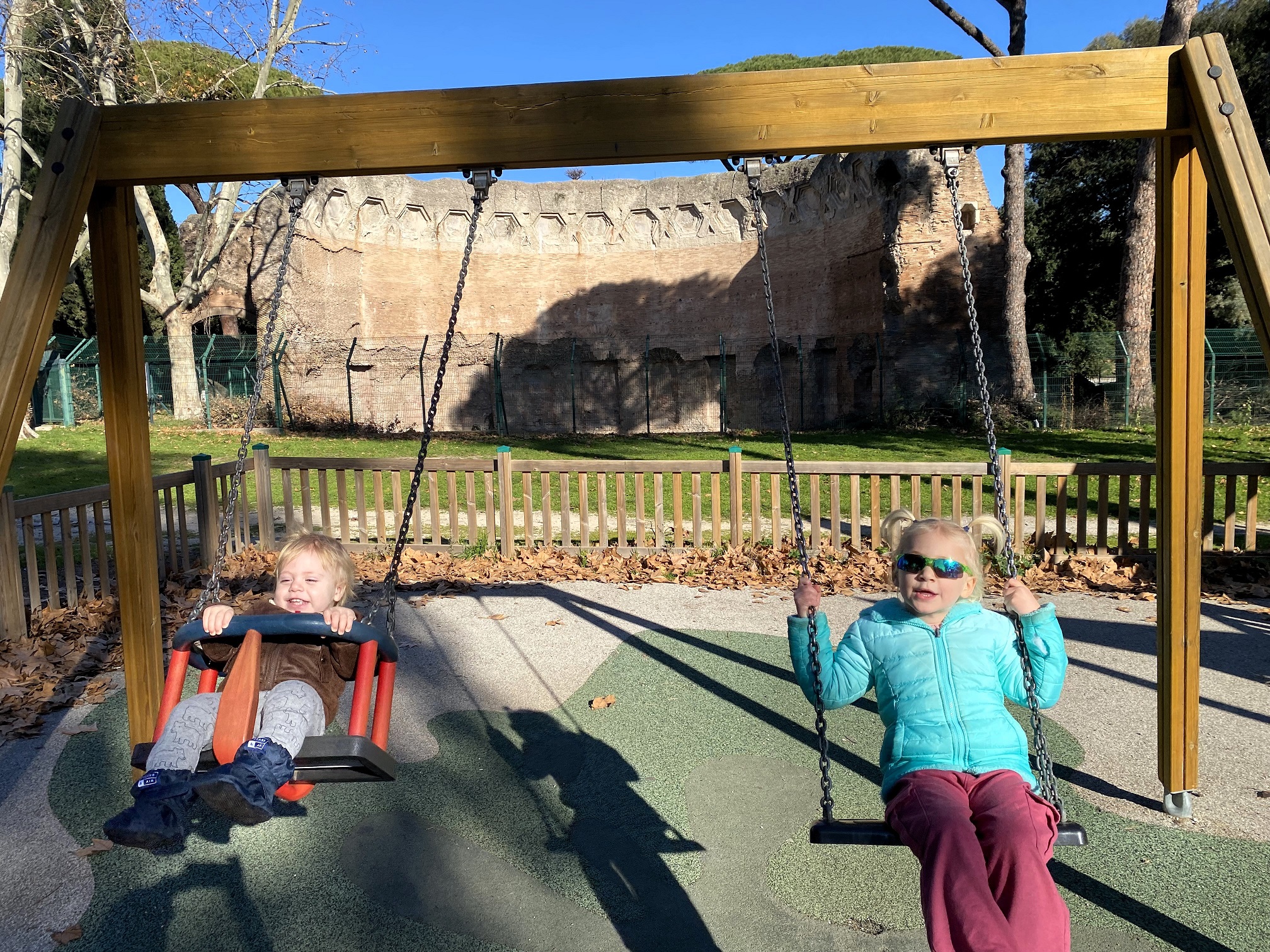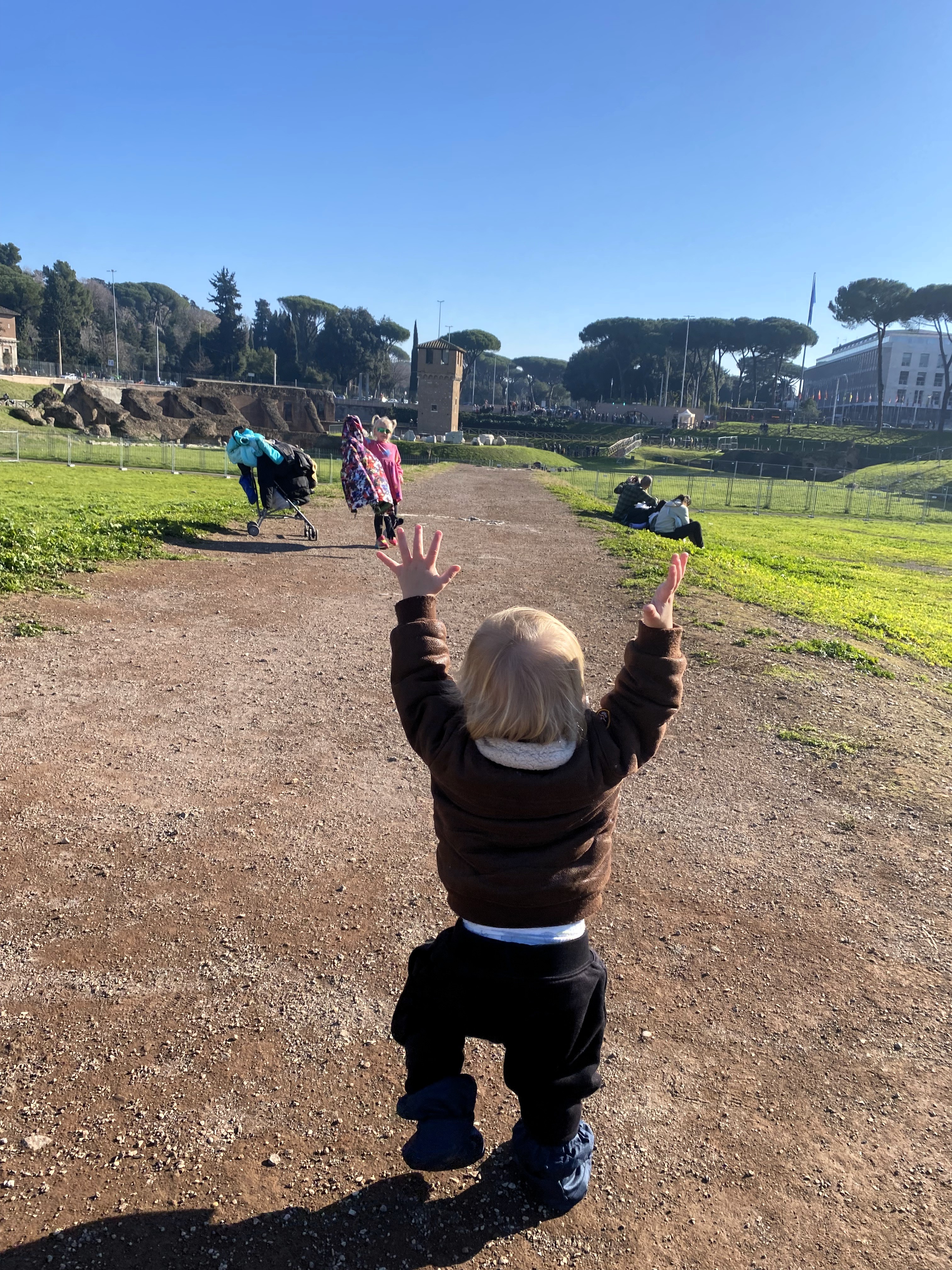 Once arriving in Rome, we set our sights on all things gladiator! First up: Gladiator School! Gotta know what you’re doing, right?! Joe and T1 headed off for their big training day while the littles and I enjoyed some playground time amidst the ruins of the Trajan Baths. Only in Rome, right?!