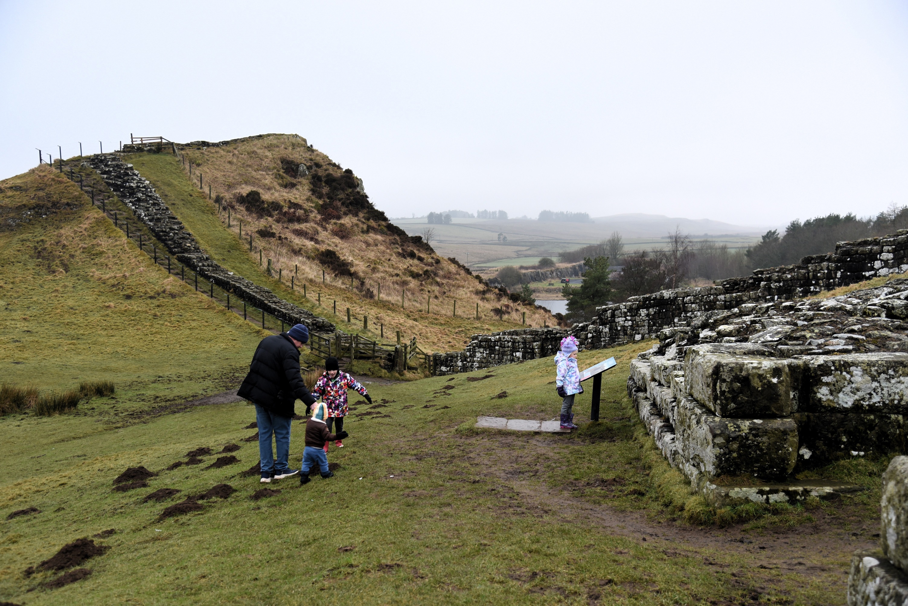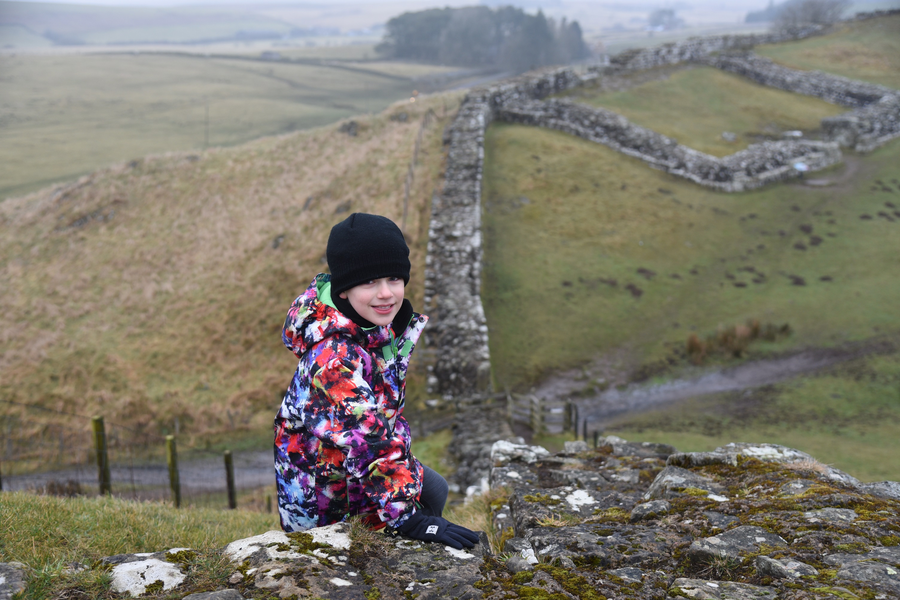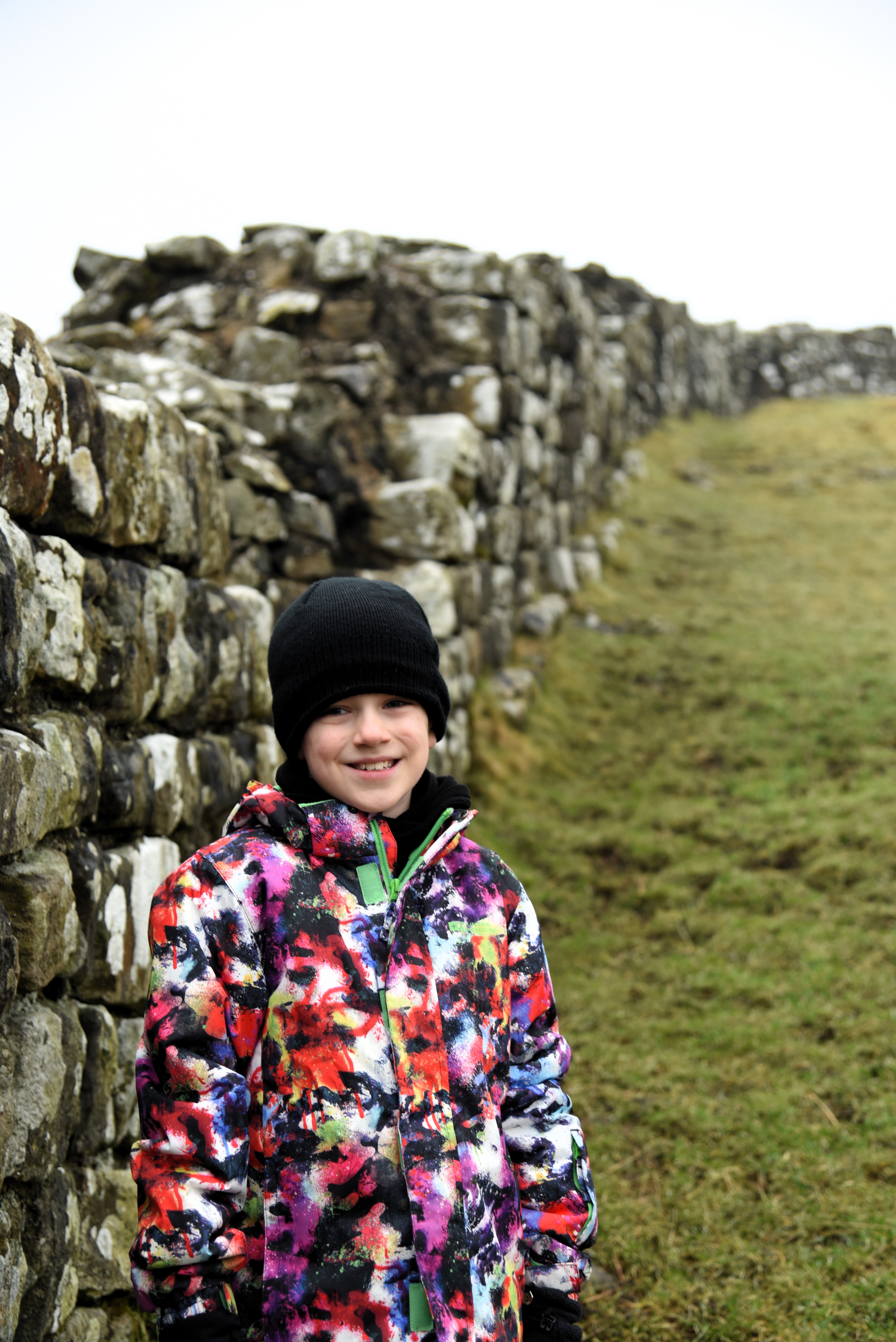 It was pretty funny, actually. After parking, there was a small hike through several cow-proof fences to get to the milecastle, including one aligned with Hadrian’s Wall. I went through first, and a few steps after T1 had passed through, I said to him, “You did it! You just crossed Hadrian’s Wall!” He gave me a blank look, raised his palms, looked around with mouth agape, and then scrunched his face. “What?! That is Hadrian’s Wall?” Clearly, he had envisioned something more attuned to the illustrations in his history book. Regardless, they all still had a good time climbing about!