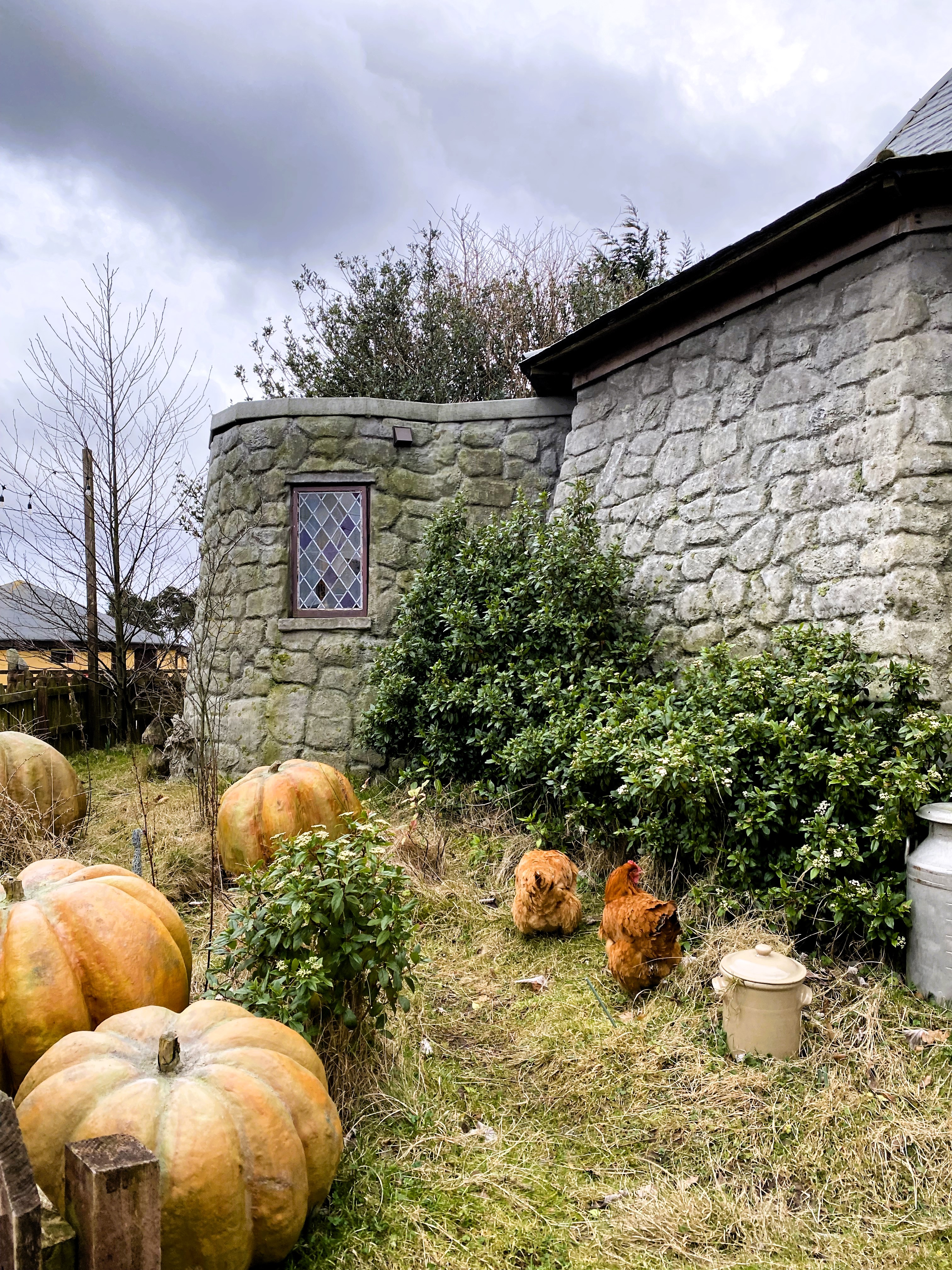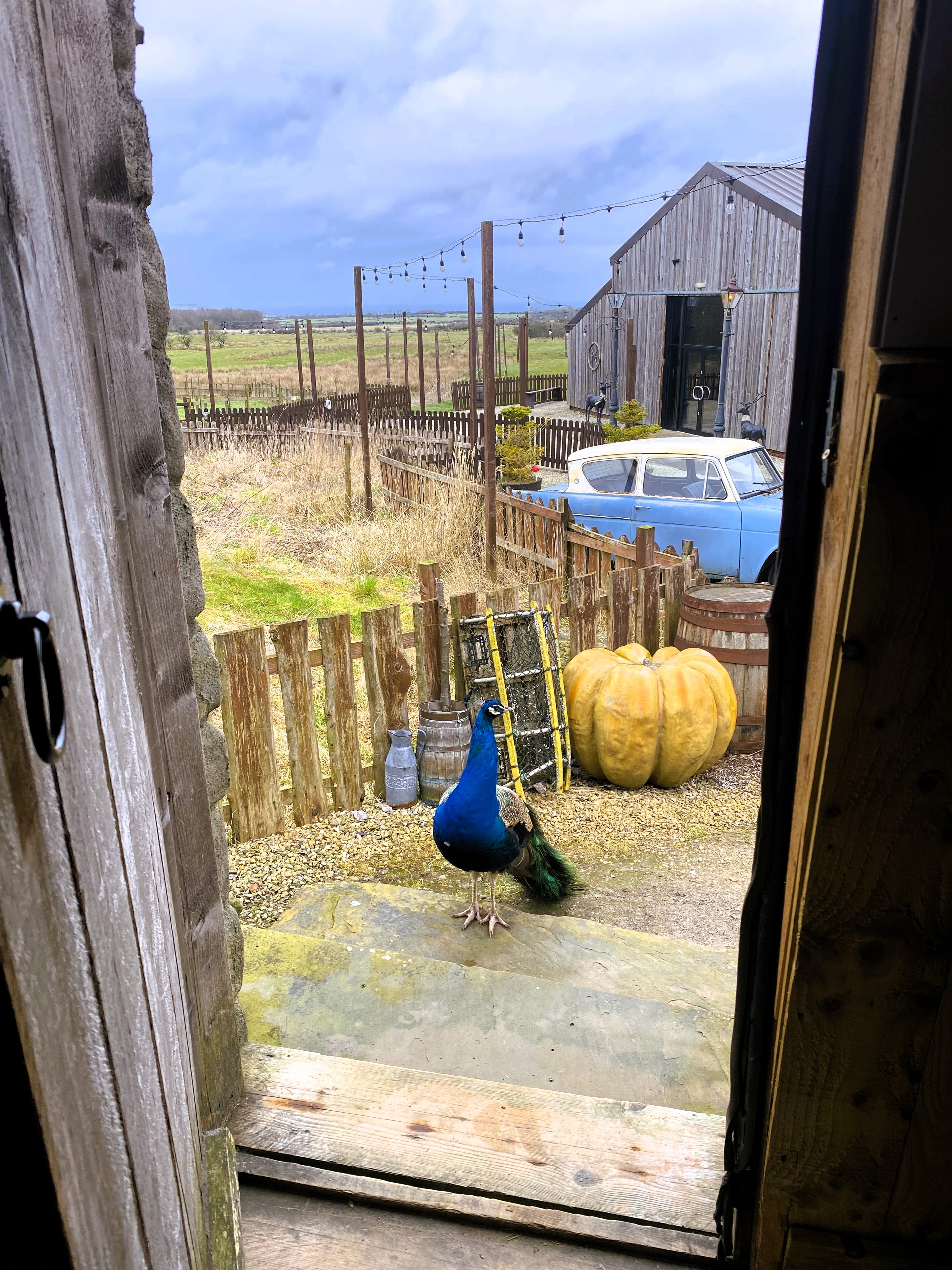 Our stay was complete with pumpkins, chickens, and a very brave peacock!