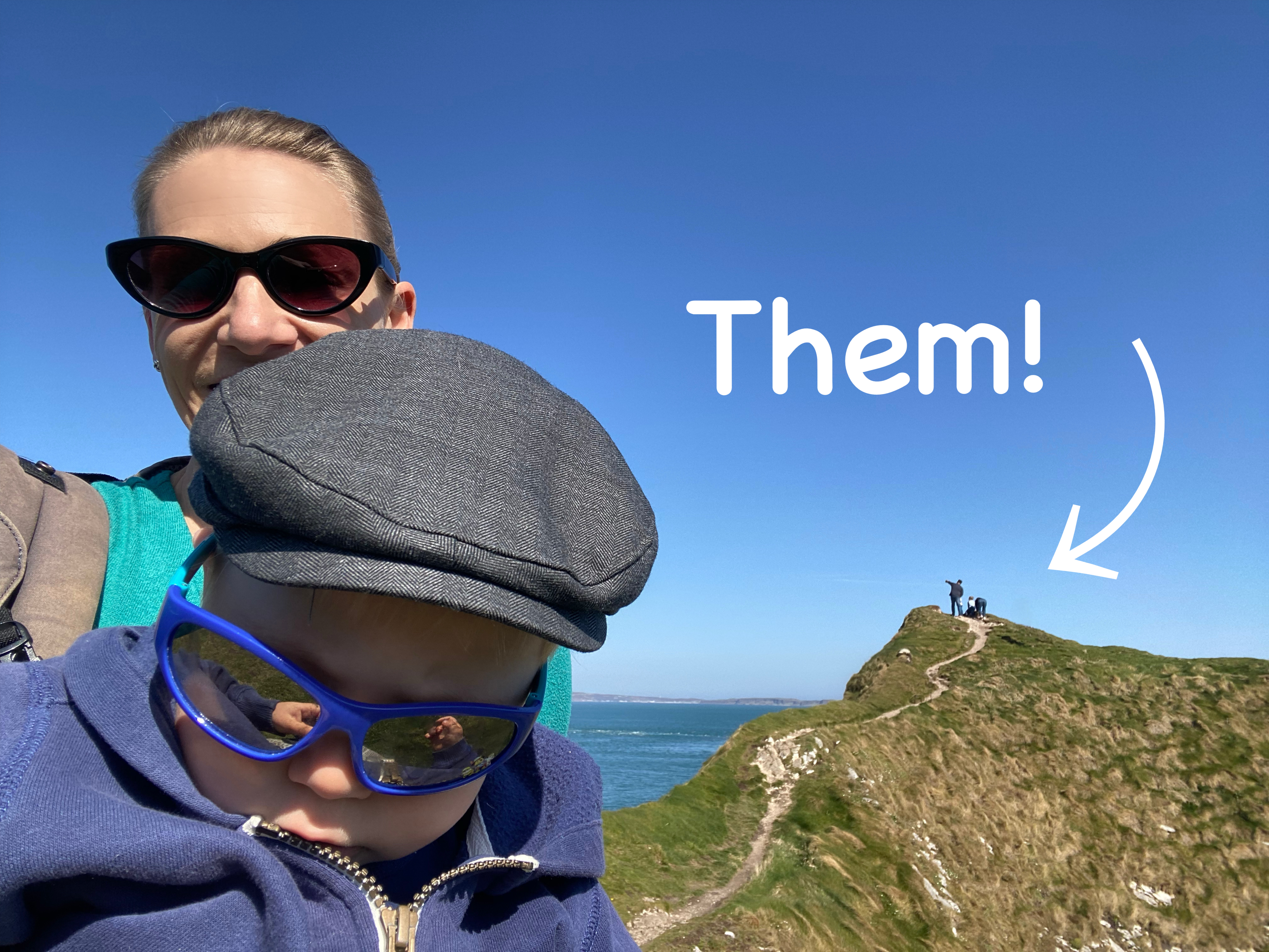 I walked about half way and then decided that the 30+lb toddler strapped to by body wasn’t going to help with mobility, agility, sure footedness, balance….or anything, for that matter. So I stayed back and just stressed out. You know, circled the drain about my favorite people standing on a sheer rock cliff above the Irish Sea.