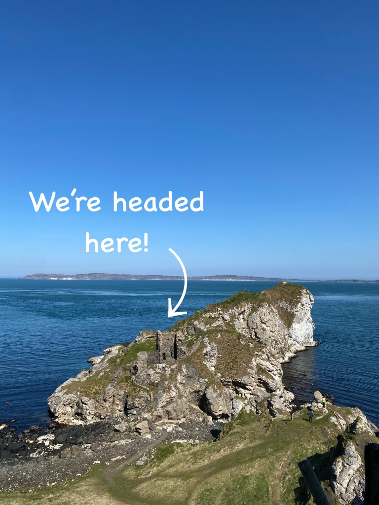 Our afternoon was spent at Kinbane Castle. This place was A LOT of work, and terrifying at times, but I absolutely loved it! The night prior, my father-in-law said to me, “Tomorrow’s plan is not in my guide book.” “And that is exactly why we are going there!” I replied. Kinbane Castle was built in the 1540s and sits on a “narrow rock promontory accessed by a steep walk”. Well…that’s an understatement!