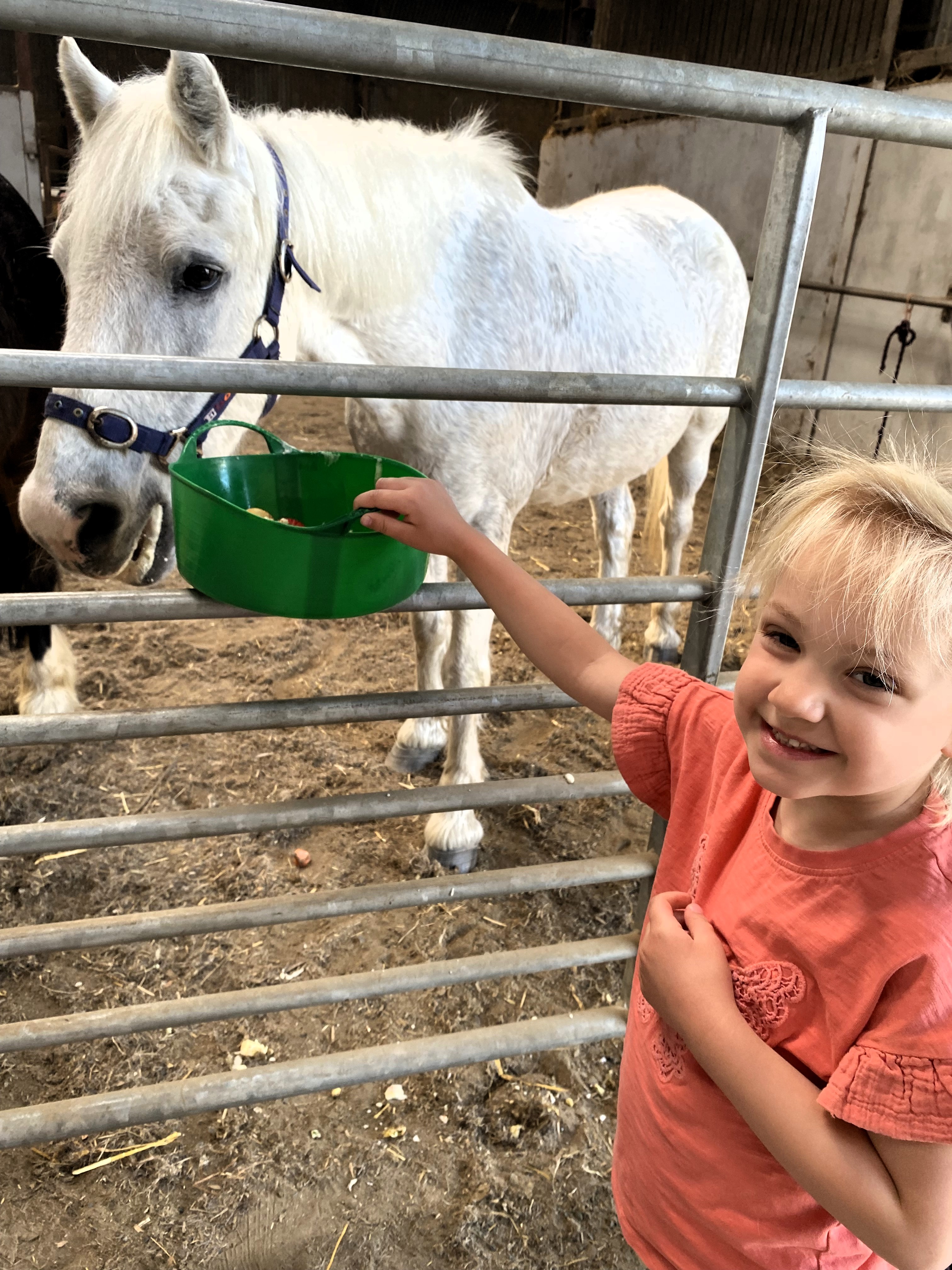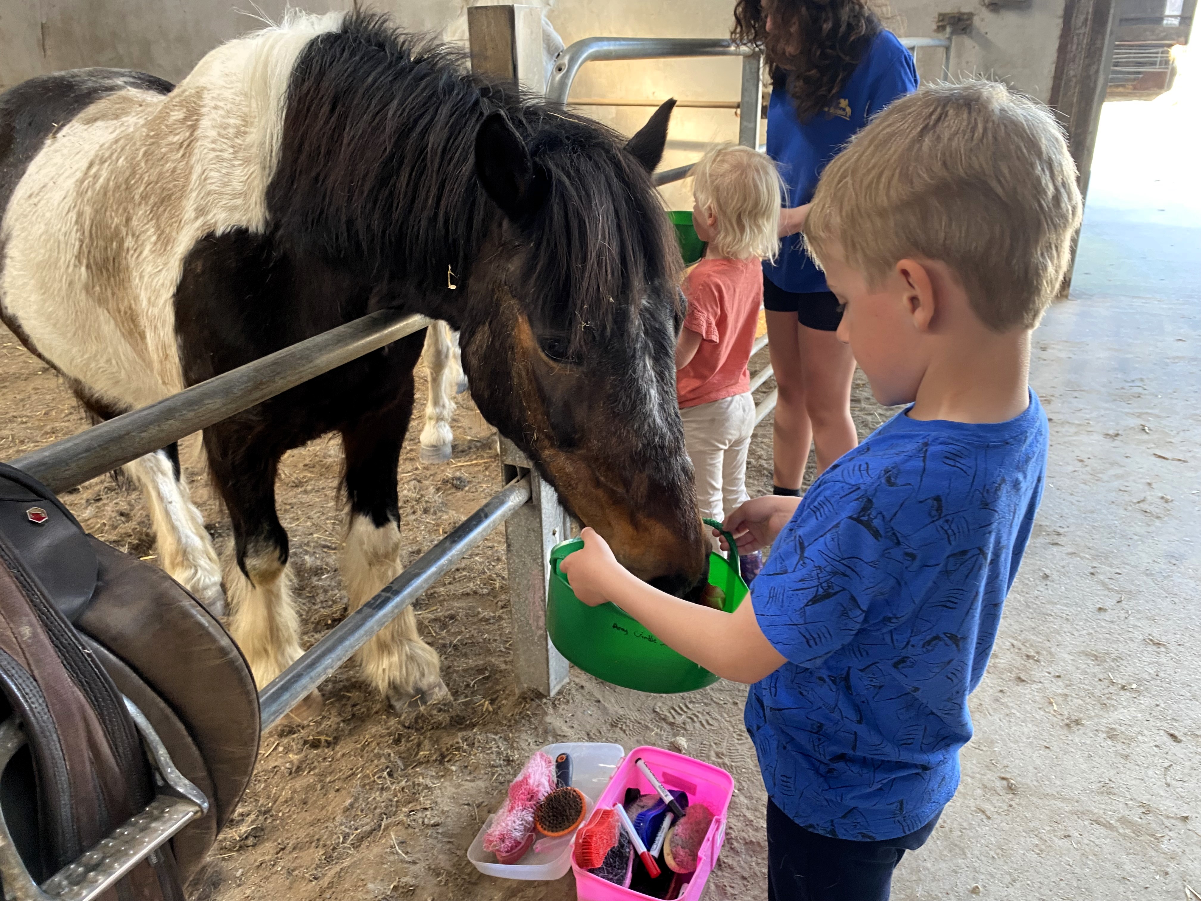 Finally, we untacked and feed out the treats we brought. T1 got to smash all the apples with his heels!