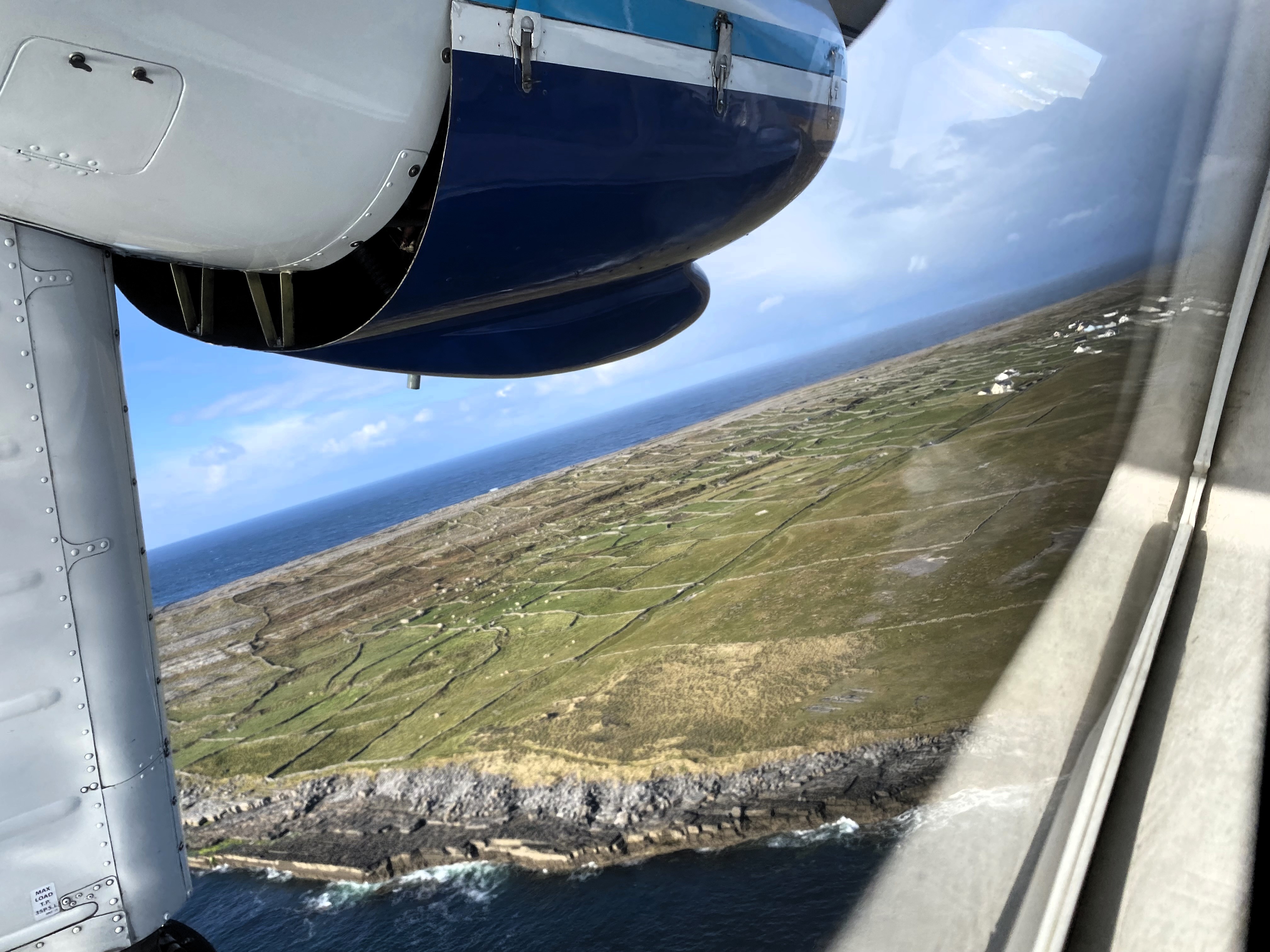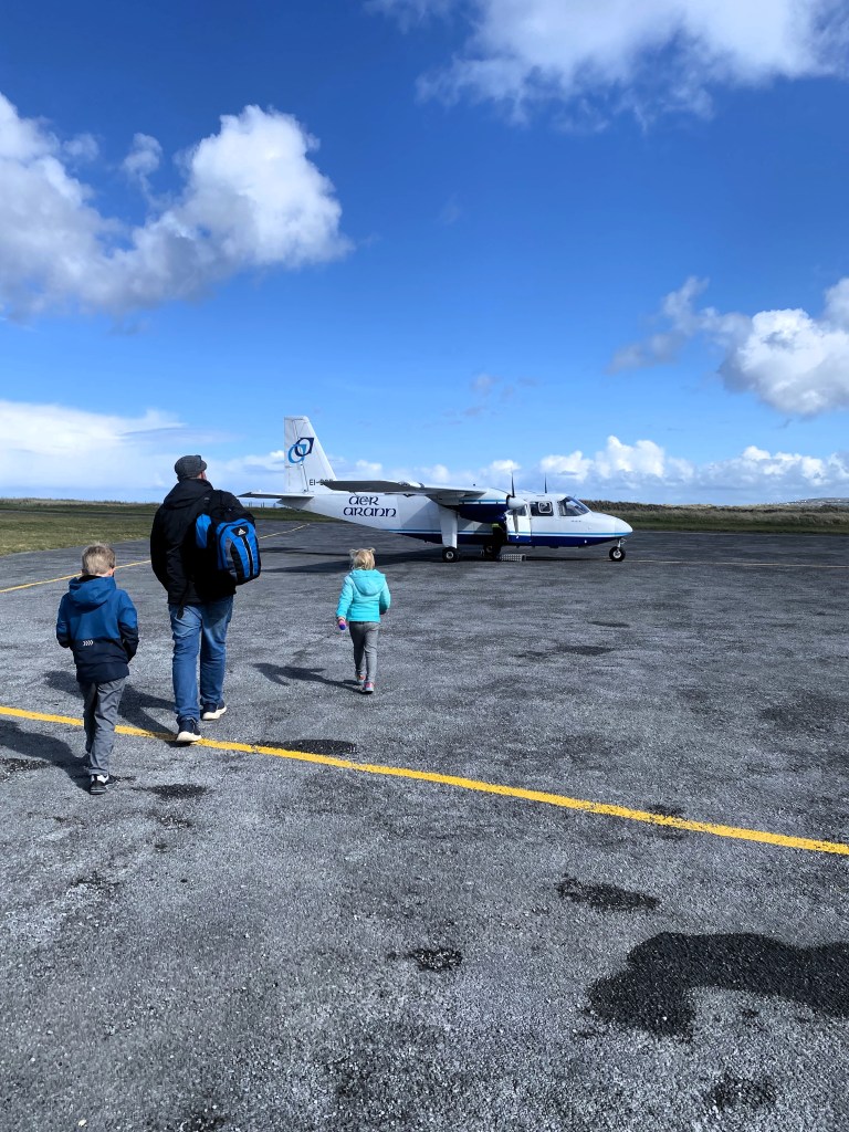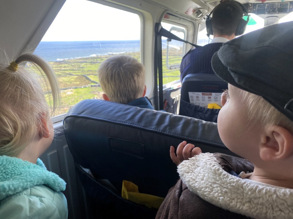 Our next adventure was a day trip to the largest of the Aran Islands, Inis Mór! There are three islands in Galway Bay, and we chose Inis Mór because it was the most family-friendly. In order to maximize the day, we decided to fly a tiiiiiiny little airplane to the island. As the weather for the day predicted strong winds, I was a tiiiiiny bit nervous. But we weighed in for the flight, received our seat assignments, and off we went! Winds and all!