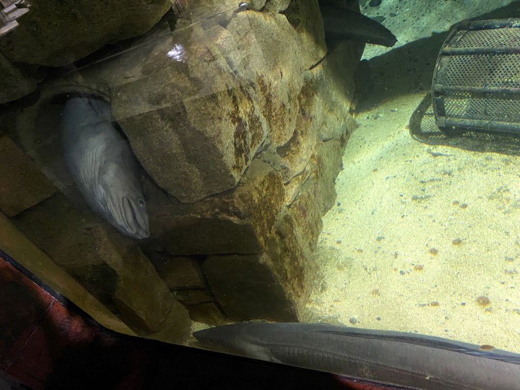 We were able to see a feeding of the eels, and one of them wouldn’t bother to wake from their slumber for a nibble. Another one came up to the surface and gave us a good view of just how big they are!