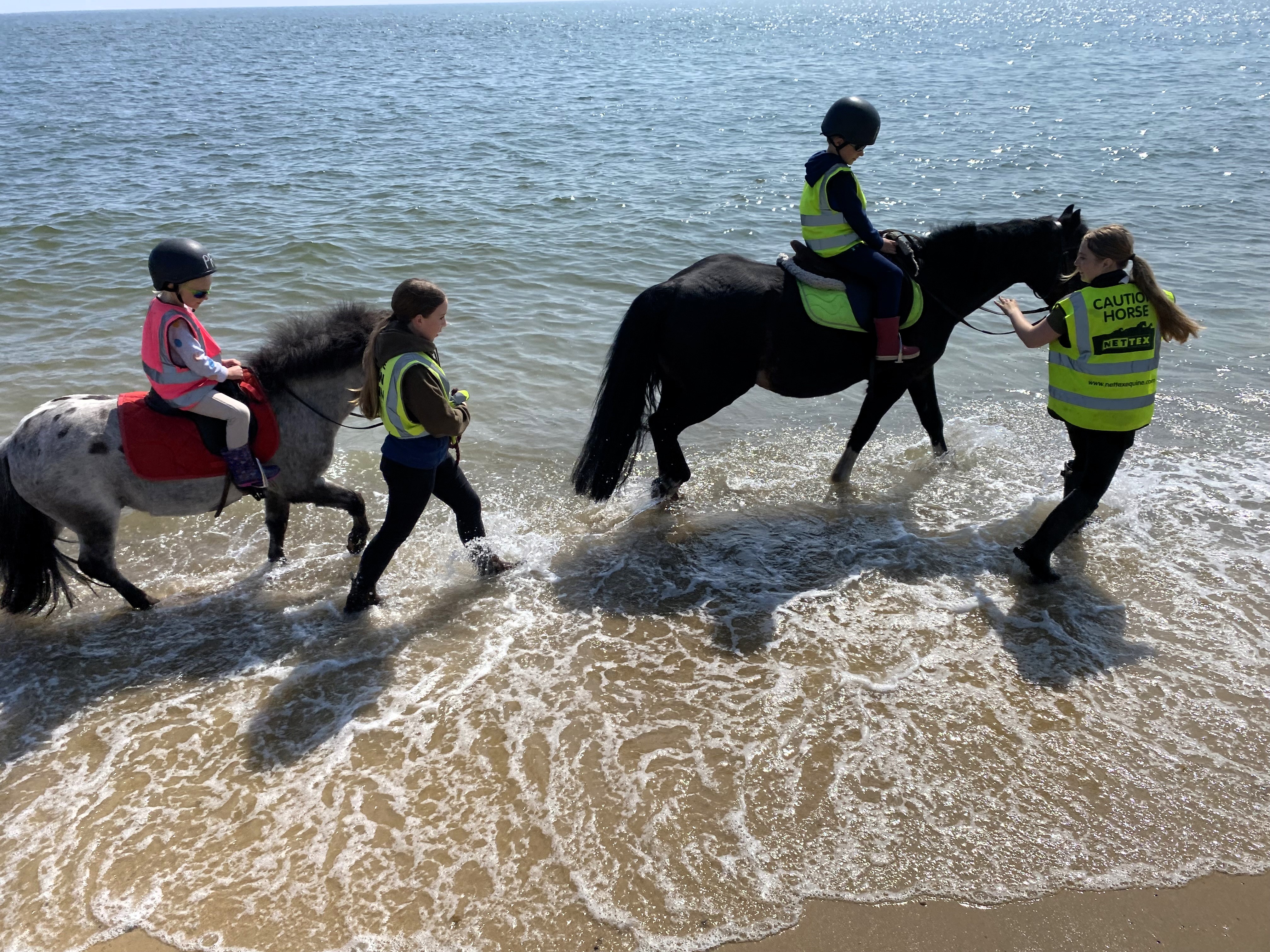T1 was our strong leader on ‘Lady’, while T2 and ‘Whiz’ ponied behind! They got to do some solid trotting and lots of hooves in the sea! T2 was all grins, all morning long.