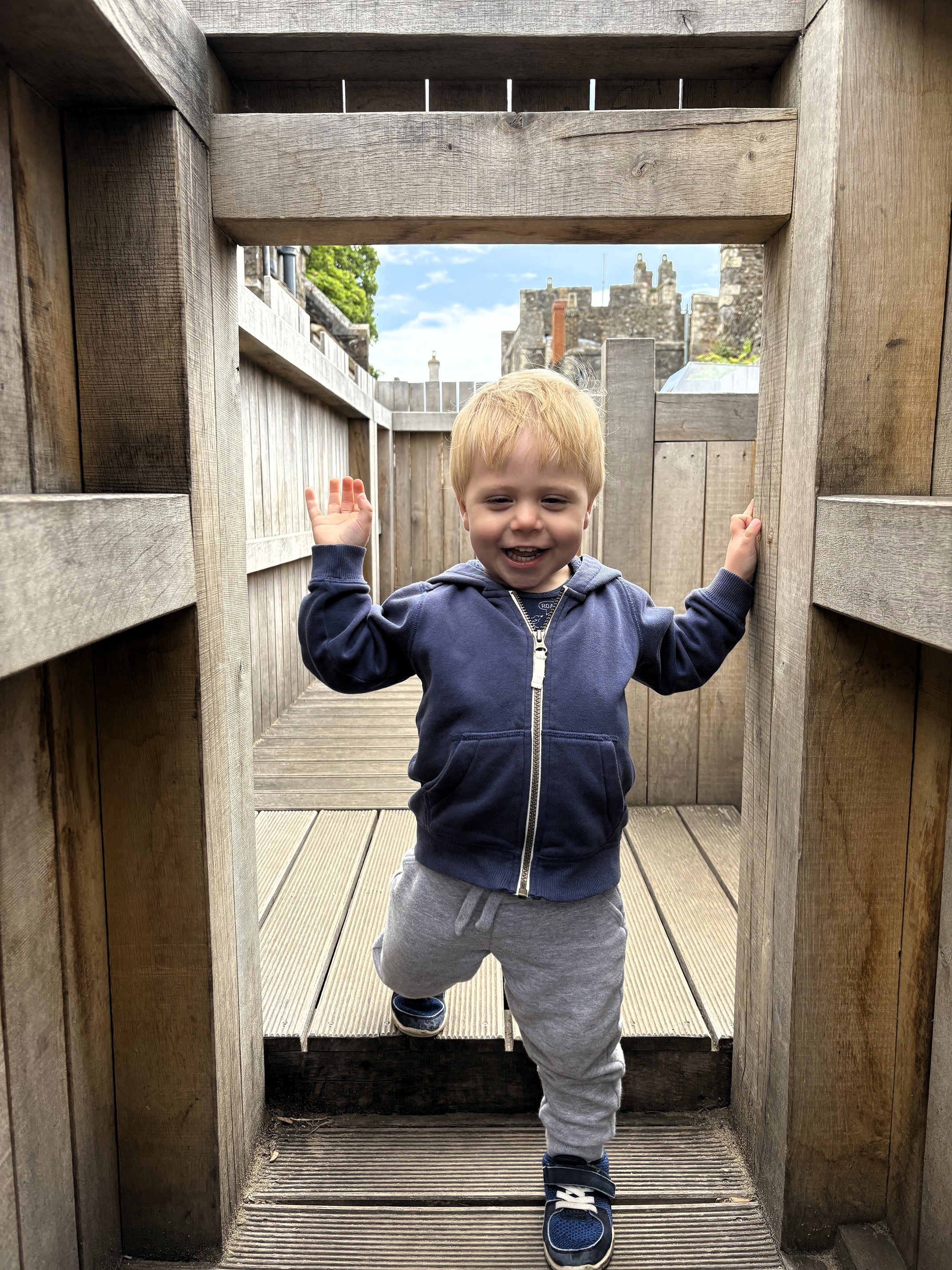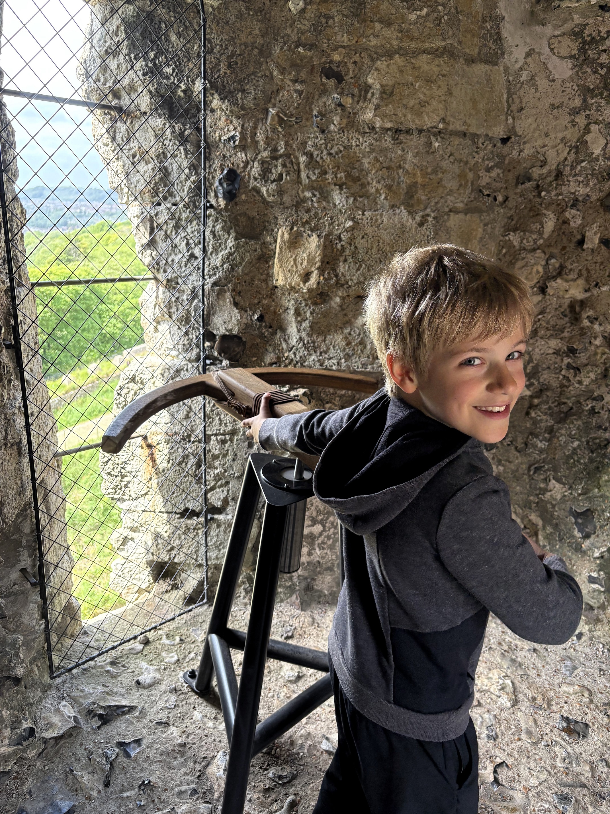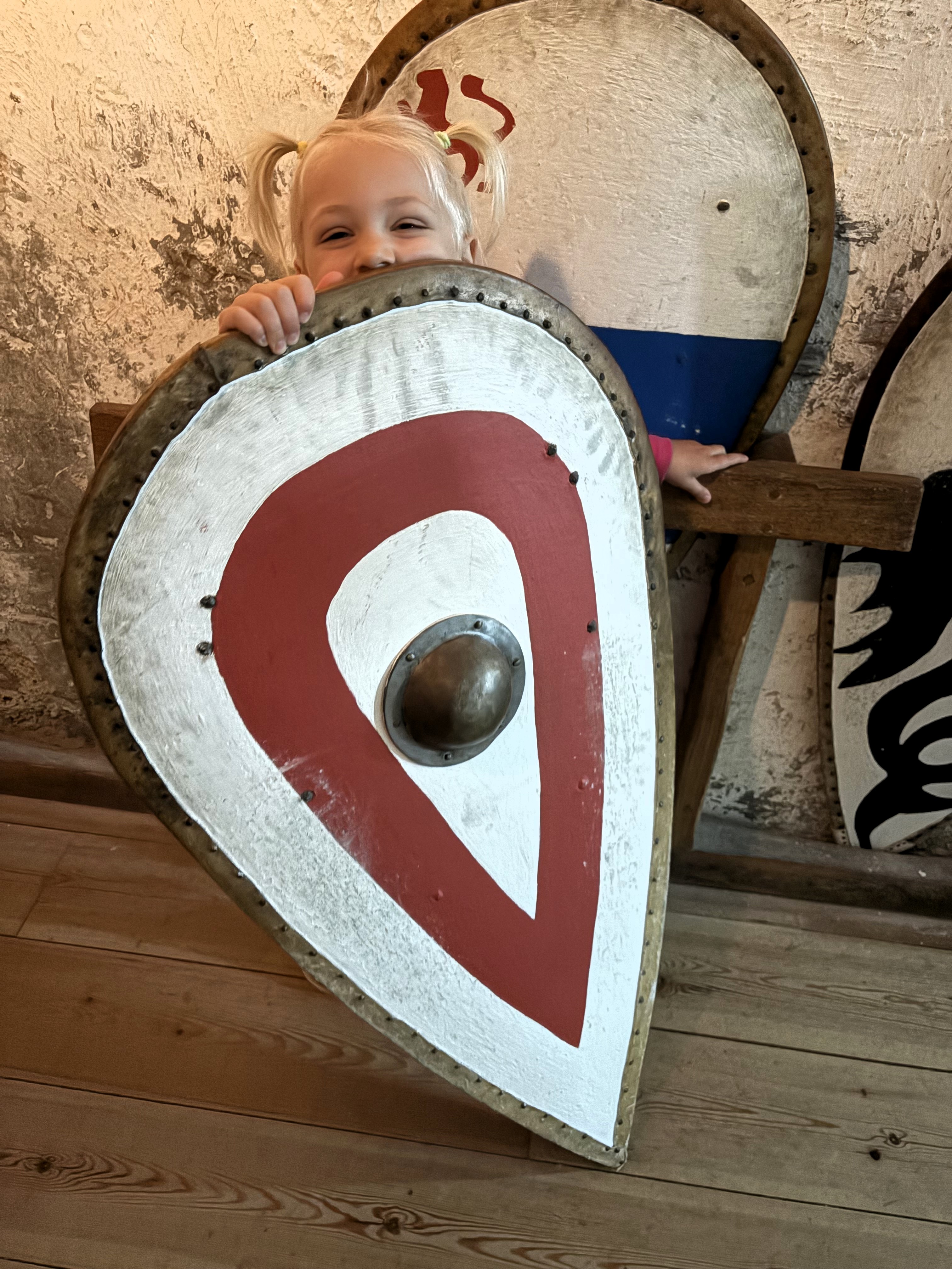We headed in and started exploring. There were a lot of cool things to see and do! The kids enjoyed interacting with the displays, goofing off on the top of the keep, climbing on the play structures, and playing games of “siege”. This is a really cool castle!