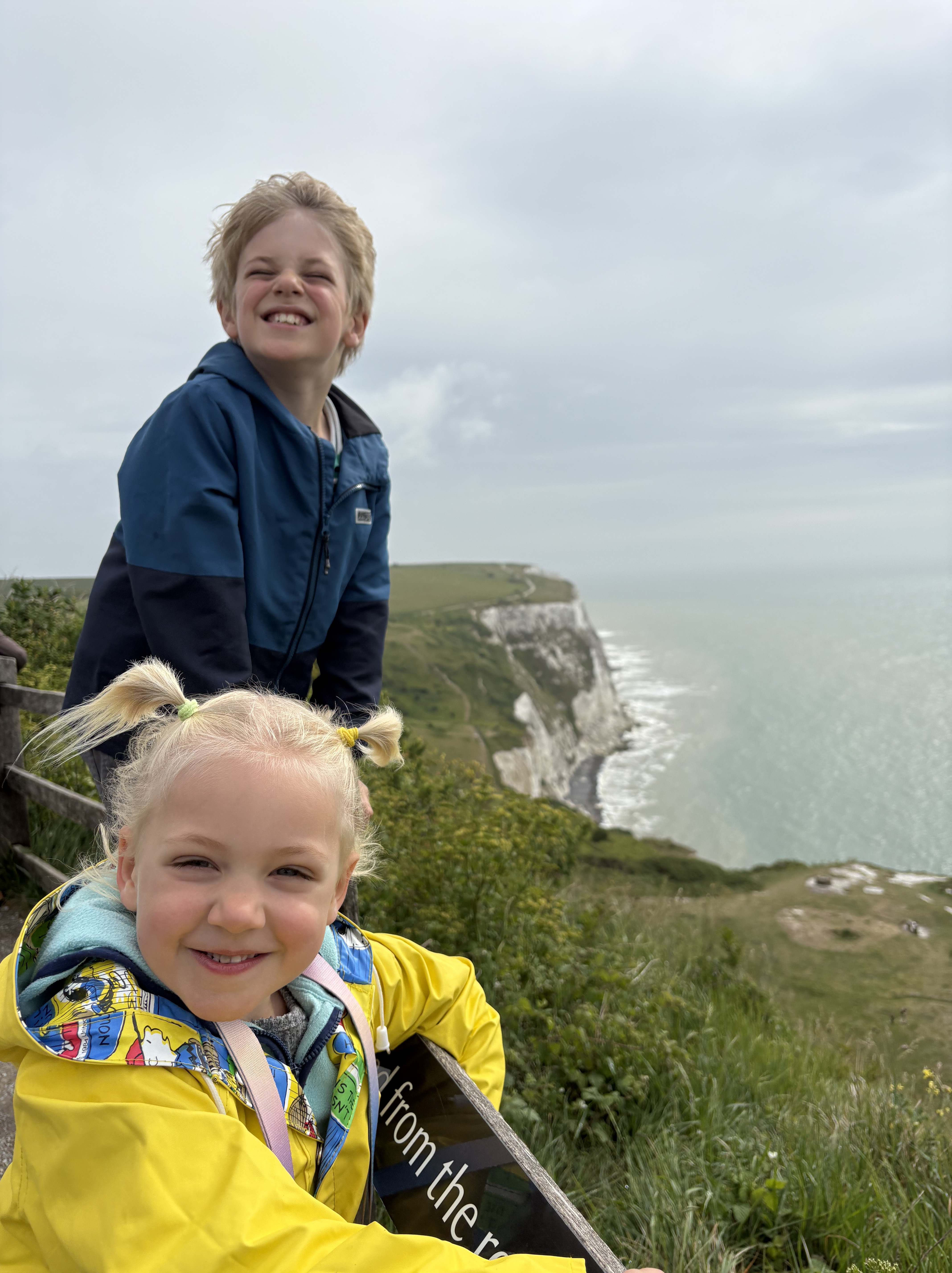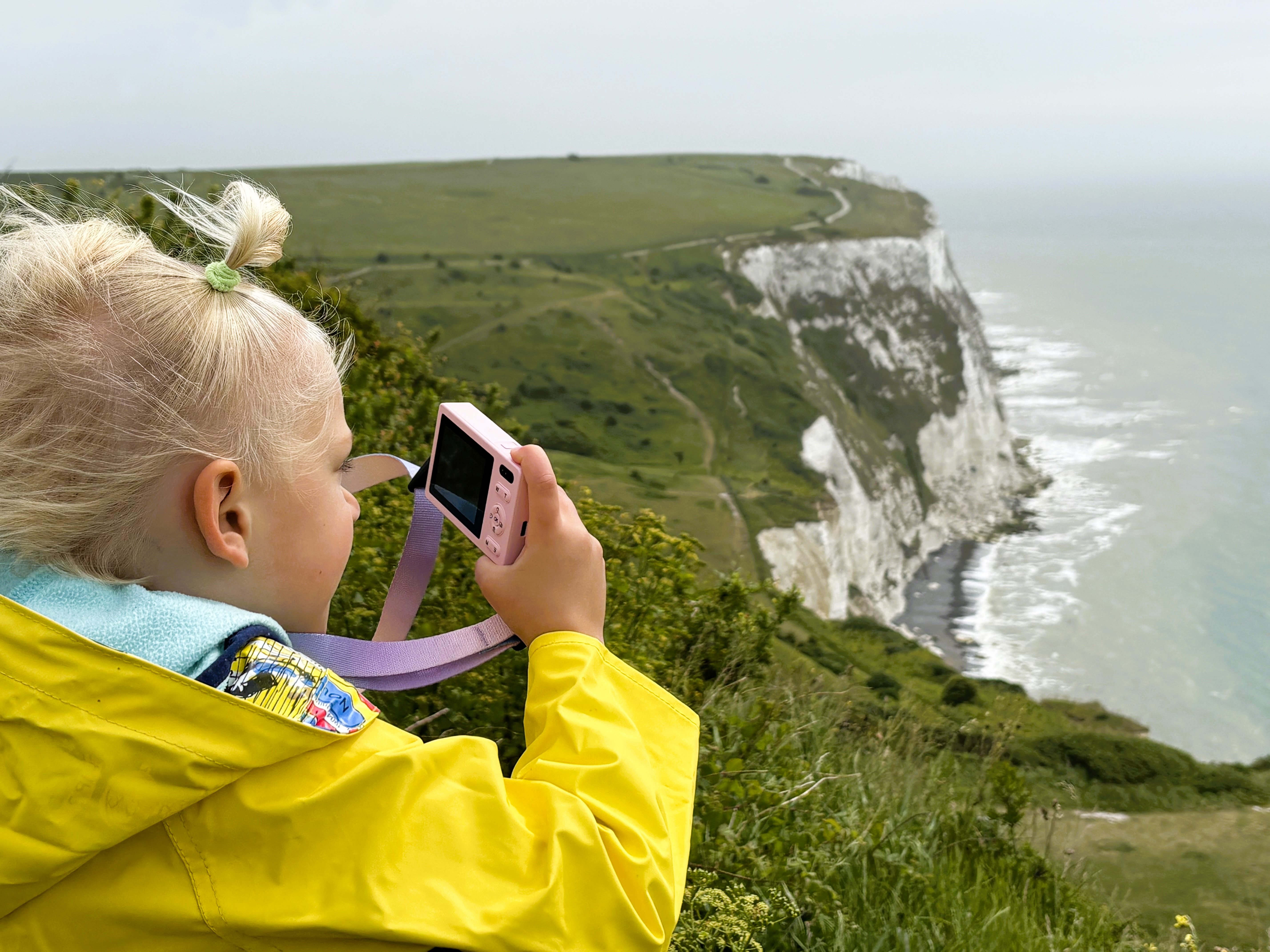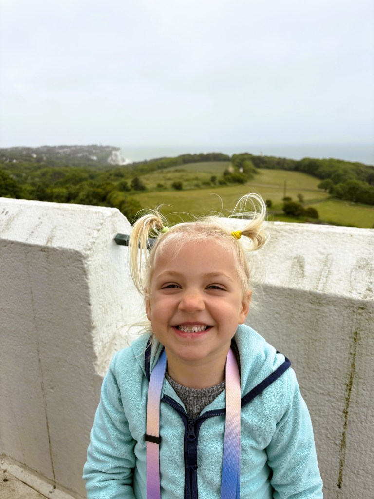 We ended up having a private tour — she rang the bell that signaled the gears had stopped, she re-wound the gears which turned the lenses, then she climbed out the tiny door onto the blustery summit of the Cliffs of Dover! She loved every minute! On the way out — as I was thanking our guide profusely — he said, “We do it for the smiles.” Three very sweet adults made this little girl’s entire trip!