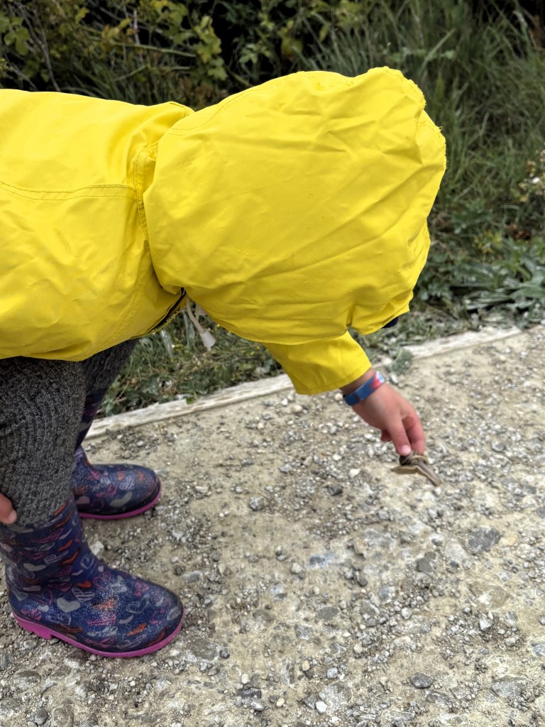 So, as the weather finally rolled in, we hiked back through driving rain. And without a complaint from the kids. In fact, T2 was still committed to saving every snail she found on the path.