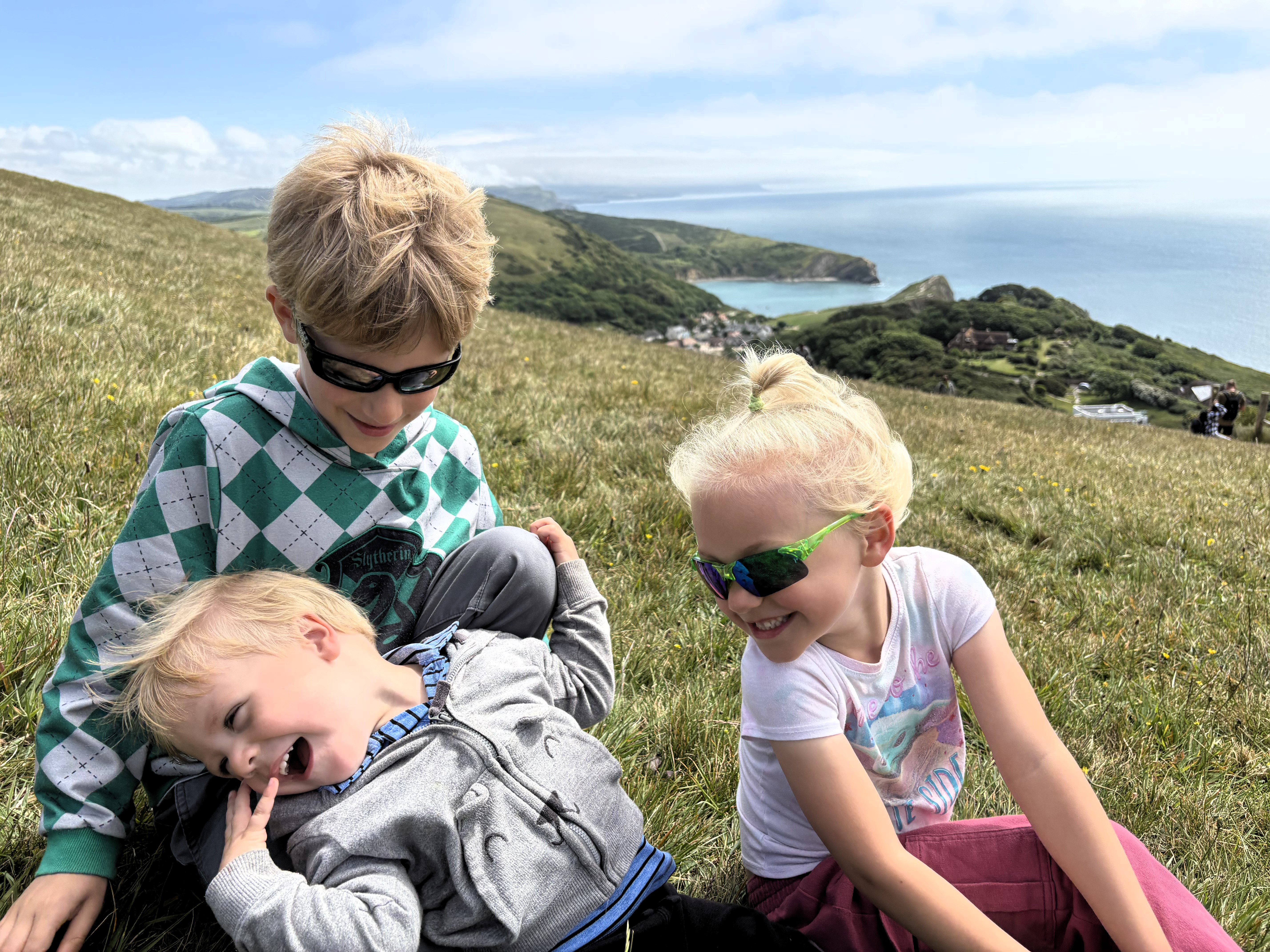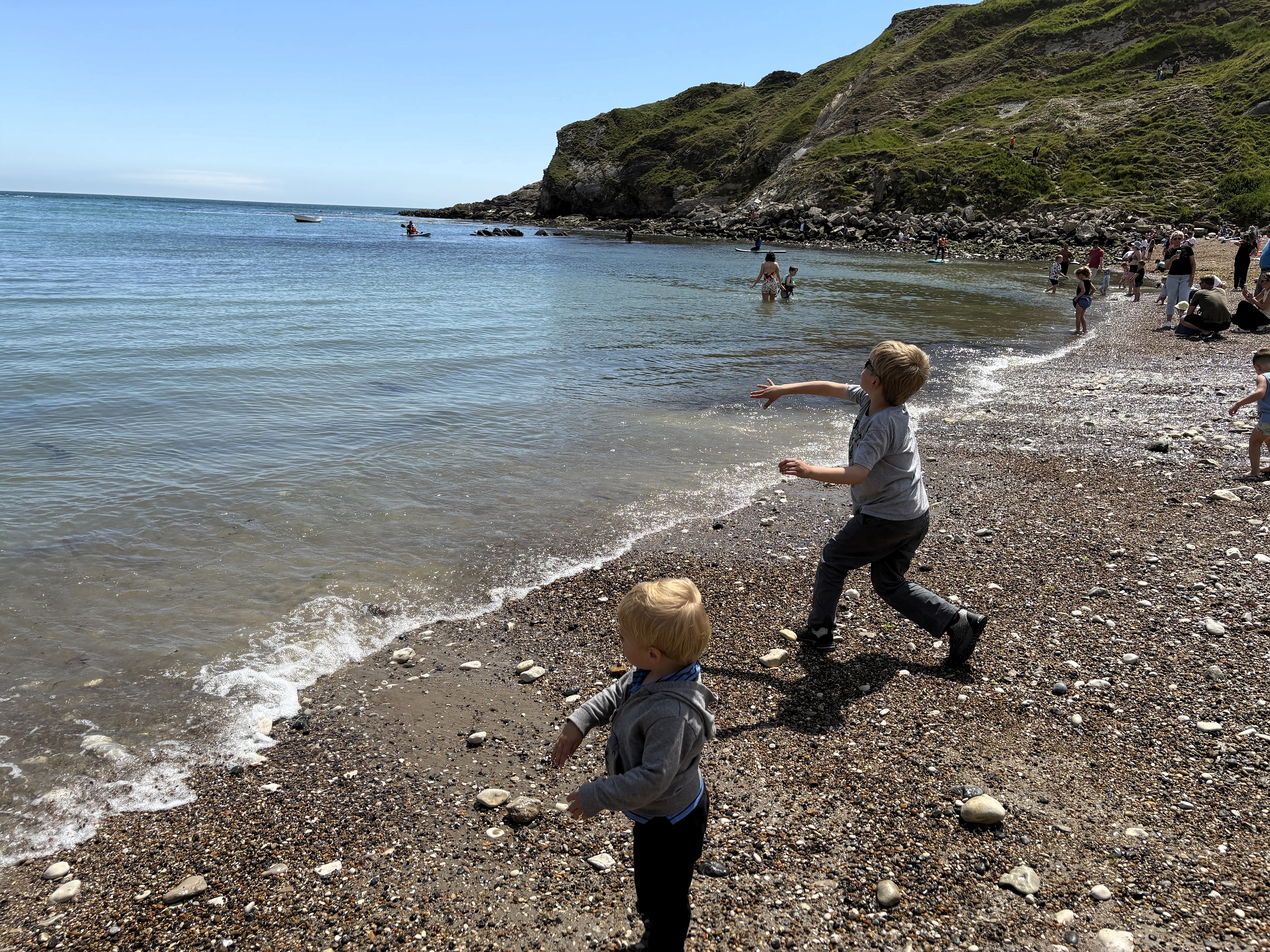 After lunch, we headed to Lulworth Cove. Did some good rock throwing and then I was pleasantly joined by two adventurers on a climb to the top of the cove for a look-see.